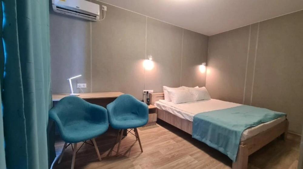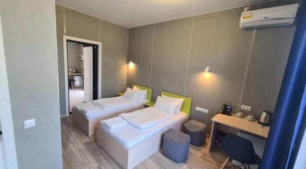 Уютный однокомнатный номер, с двумя раздельными кроватями рассчитан на проживания одного или двух гостей. Площадь номера 20 м2. Современная планировка номера вмещает Две односпальные кровати размером 900х200, кондиционер телевизор со Smart TV, внутренний телефон, мини-холодильник, электрический чайник, чашки с блюдцами, мини-сейф. Ванная комната: душ, раковина, унитаз, банные полотенца, фен, мыло, туалетные принадлежности.