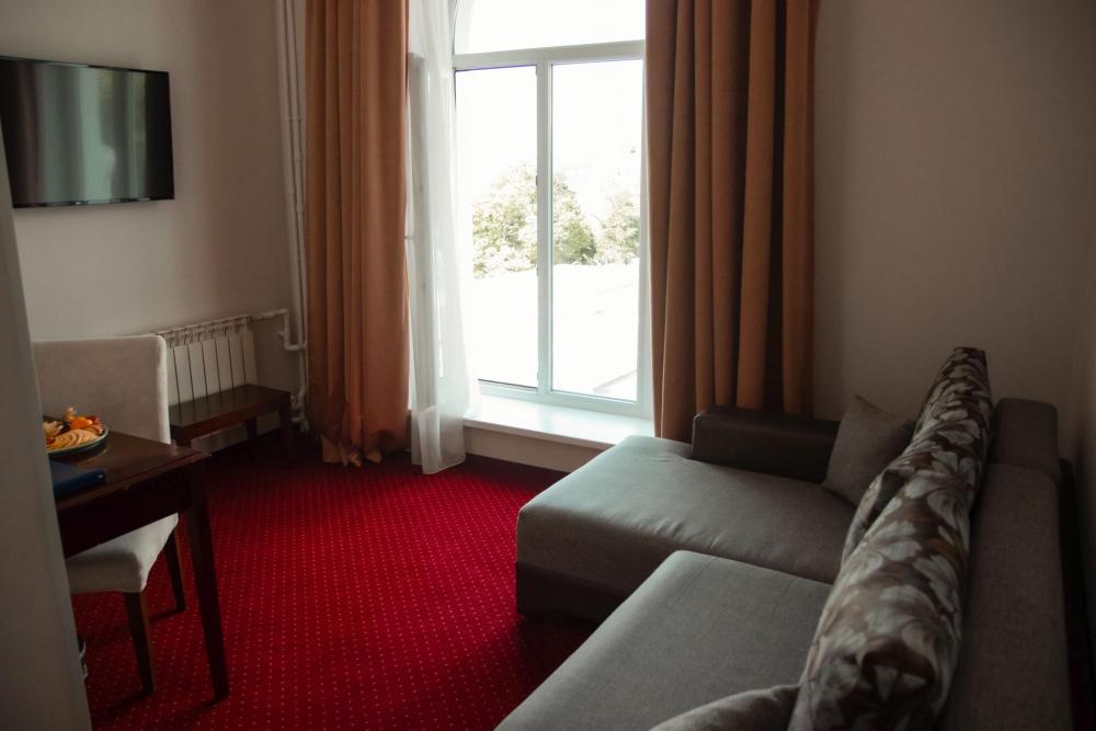 Уютный, комфортабельный номер средней площадью 40 м2. В связи с особенностями исторического здания, в нашем отеле представлены как просторные студии, так и уютные двухкомнатные номера, чтобы каждый гость мог выбрать наиболее комфортный для себя вариант. Номер состоит из прихожей и двух комнат – спальня и гостиная, которые разделены аркой или дверью. Также представлен номер-студия. В гостиной – удобная мягкая мебель, журнальный столик, плазменный телевизор. В спальне – удобная двуспальная кровать 1,6 м х 2 м, плазменный телевизор. В ванной комнате – ванна или душевая кабинка. Почти все номера этой категории имеют балконы, с которых открывается великолепная панорама Севастопольской бухты. Прекрасный вид на Артиллерийскую бухту и театр им. Луначарского станет приятным дополнением к Вашему отдыху. Для гостей предоставляется комплементарная услуга: 2 – х часовое посещение банного комплекса (необходима предварительная запись). В свободном доступе альпийская сенная баня, финская сауна, римская терма, русская баня и Турецкий Хаммам, а так же контрастная купель и джакузи. В стоимость номера включено одно парковочное место для легкового автомобиля.