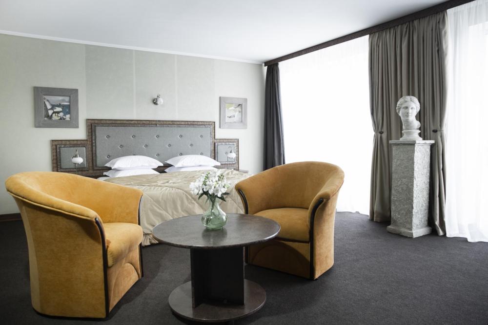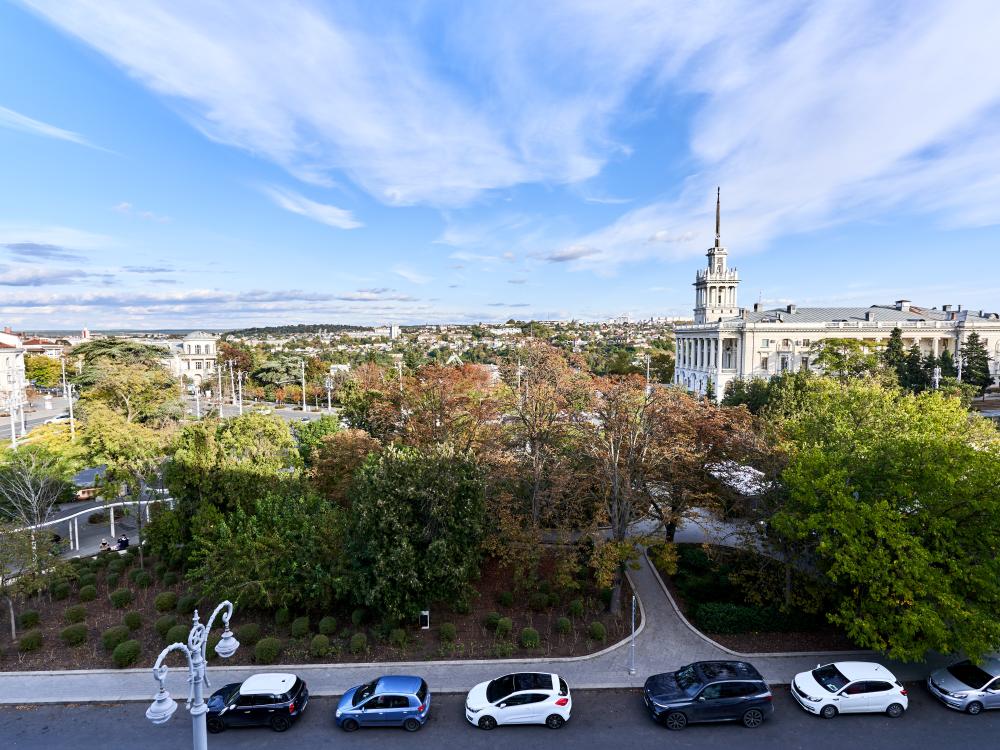 Основное размещение – 2 гостя Двухкомнатный номер с просторной лоджией, с которого открывается вид на Площадь им. Адмирала Ф. Ушакова и Севастопольский Матросский клуб. Интерьер украшают картины из коллекции арт-отеля. В НОМЕРЕ: уютная гостевая с набором мягкой мебели и рабочей зоной, спальная комната с двухспальной кроватью, прихожая, ванная комната с ванной.