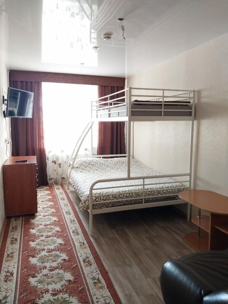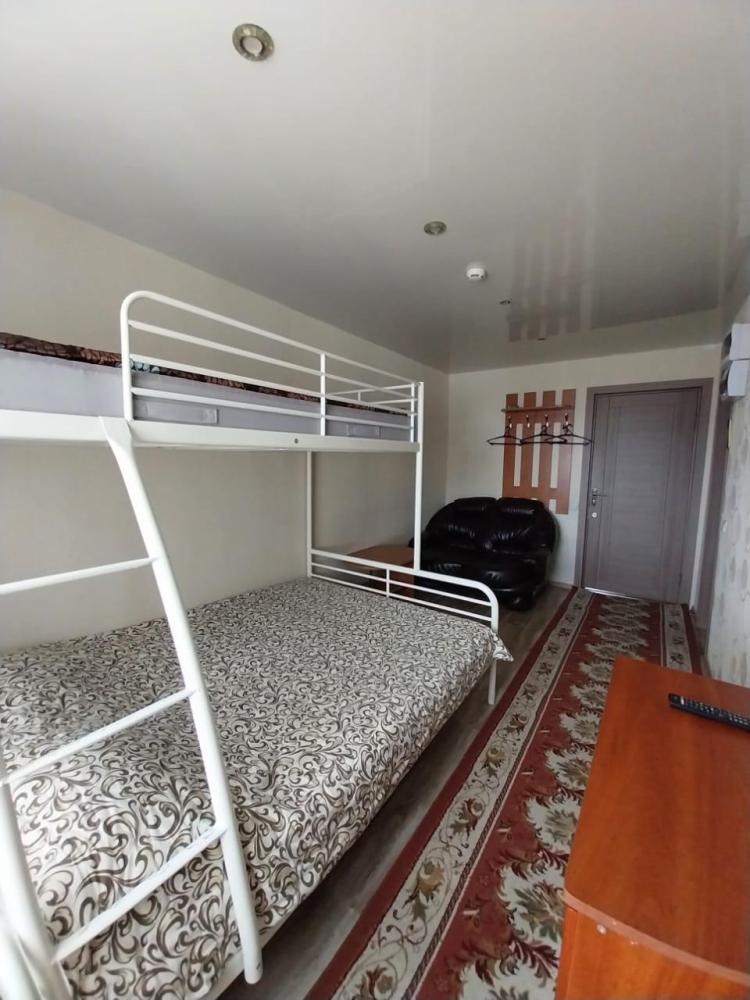Номер стандарт общей площадью 18 кв.м. для размещения до 3-х гостей. В номере: двухъярусная кровать с двухспальной кроватью на первом ярусе и односпальной кроватью на втором, прикроватные тумбочки, постельное белье и полотенца, телевизор, ванная комната и туалет в номере.