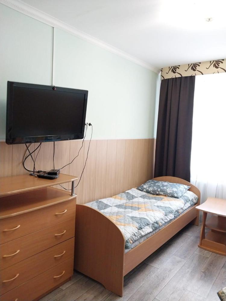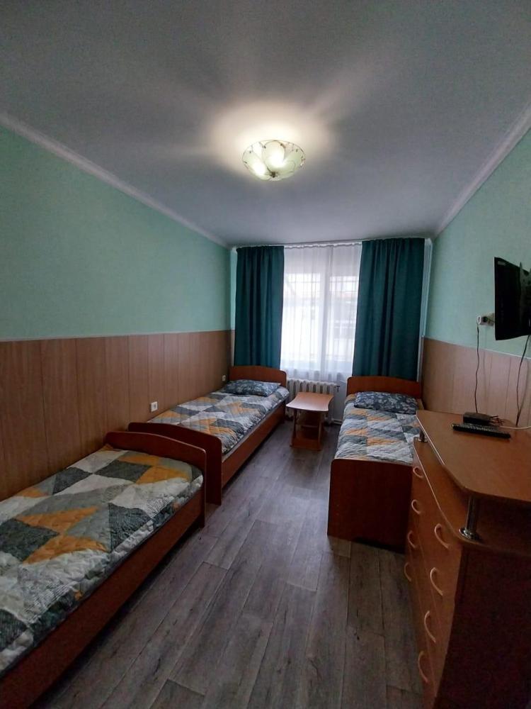 Номер эконом общей площадью 12 кв.м. для размещения до 3-х гостей. В номере: три односпальные кровати, прикроватные тумбочки, постельное белье и полотенца, телевизор. Душ и туалет общие на 2 номера на этаже.