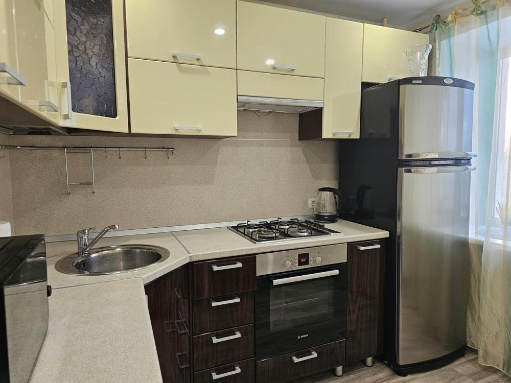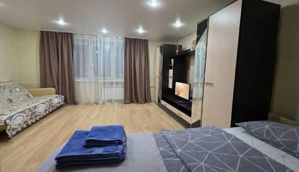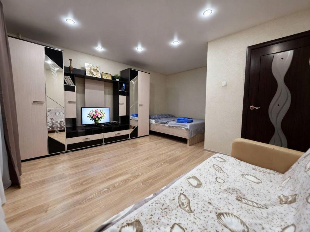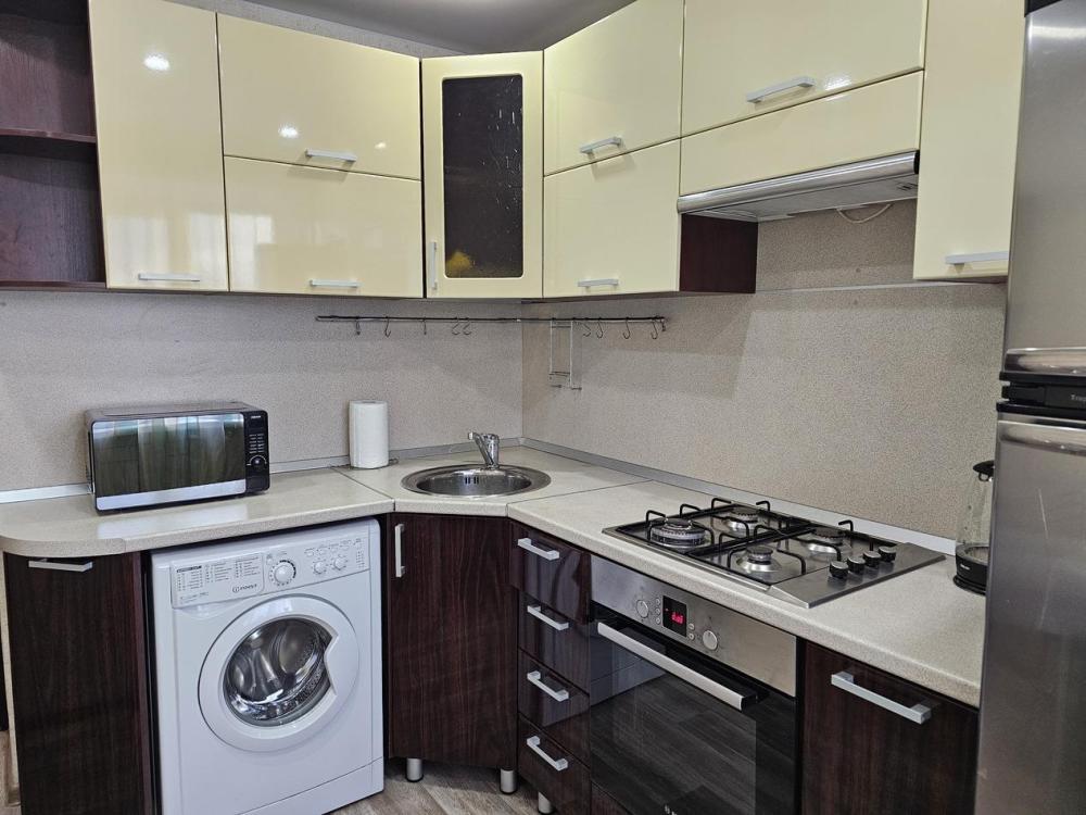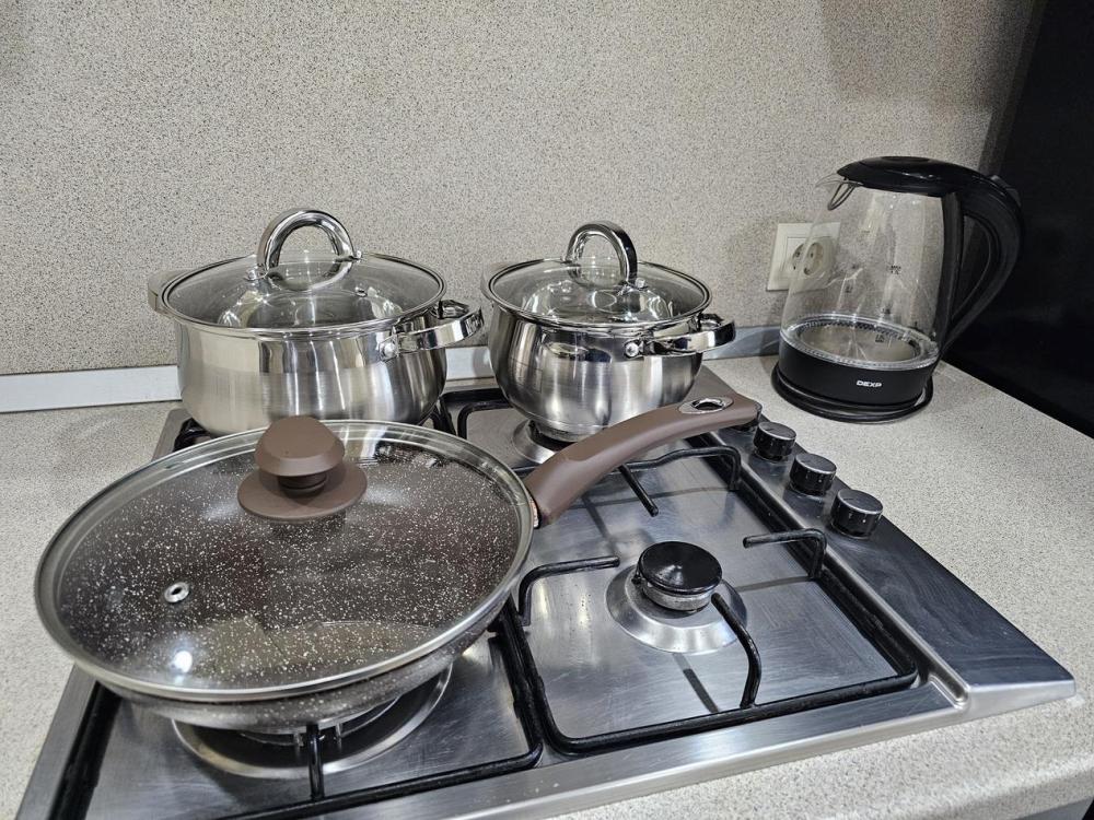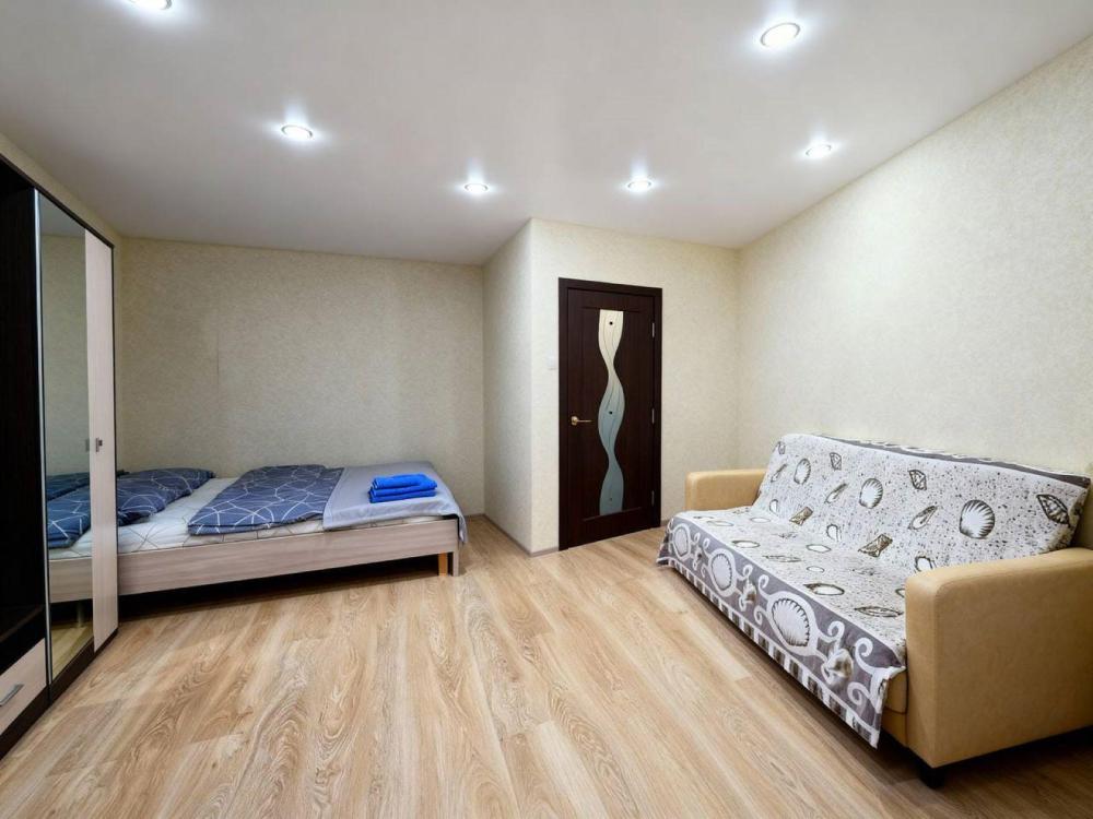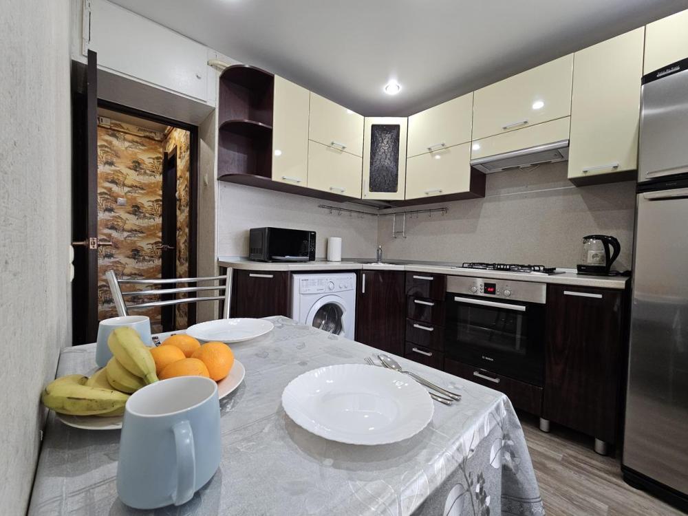 В апартаментах: двуспальная кровать 140*200см. Постельное бельё, подушки и одеяла. Оборудованная зона кухни. Для удобства: холодильник, плита, духовка, вытяжка, чайник. Набор посуды и столовых принадлежностей. Есть всё для комфортного проживания: стиральная машина, сушилка, утюг, гладильная доска.