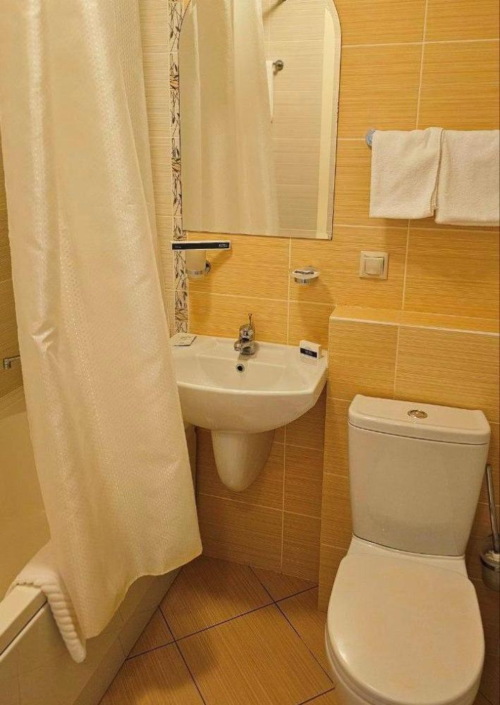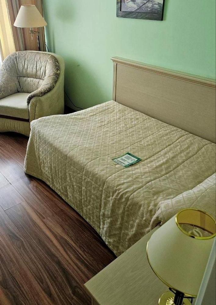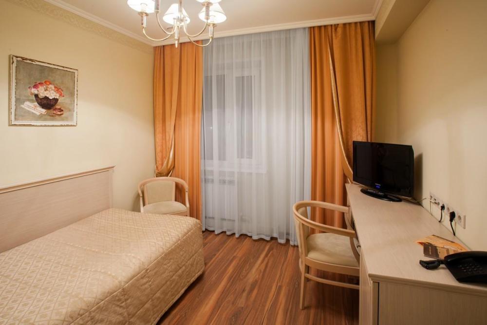 Уютный однокомнатный номер площадью 17 кв.м. с небольшой прихожей и ванной комнатой. В номере: Кровать (110*200 см.), Телевизор ЖК (более 50 каналов), Письменный стол (с канцелярскими принадлежностями), Телефон, Небольшая прихожая со шкафом, Электрический чайник, Мини-бар (наполнение бара по запросу), Кухонная посуда и столовые приборы на 1 персону Ванная комната, оборудованная ванной, Туалетные принадлежности