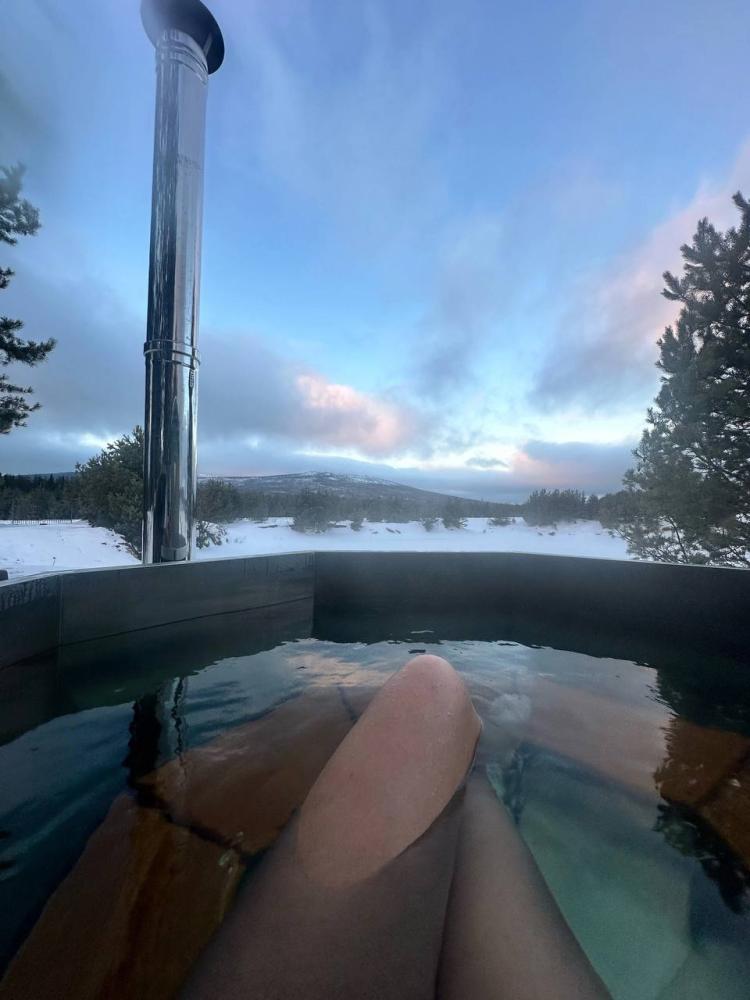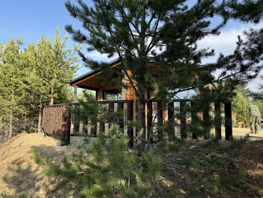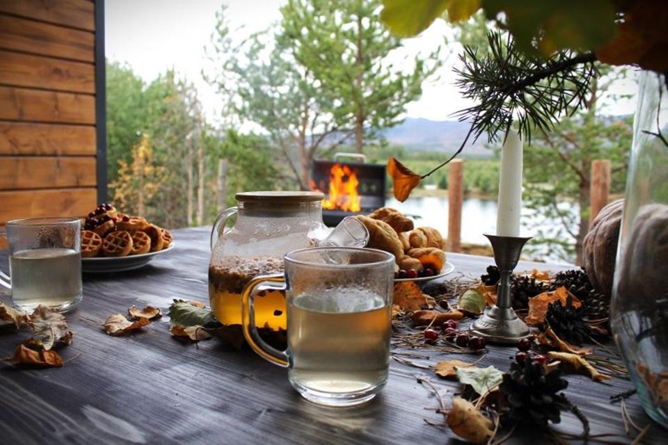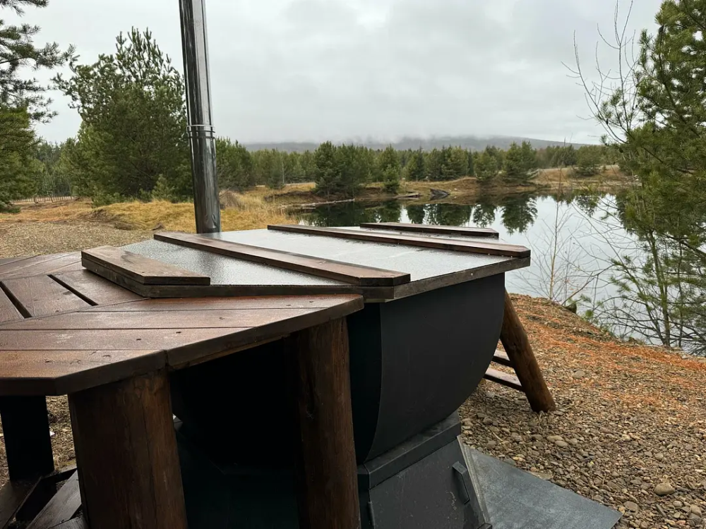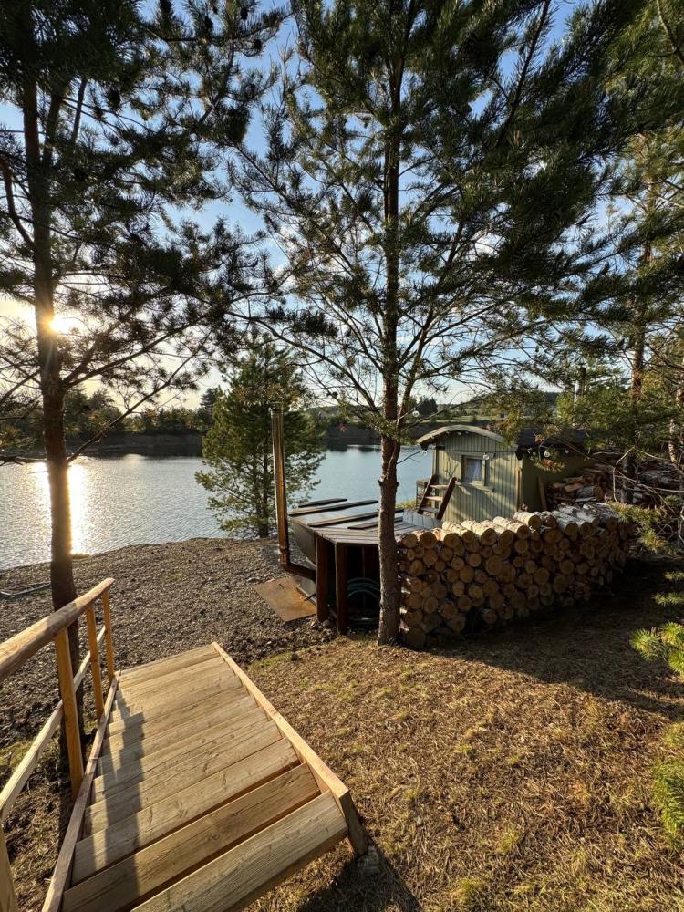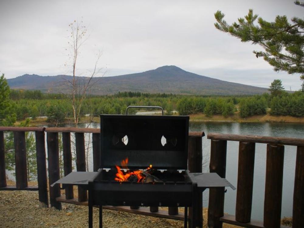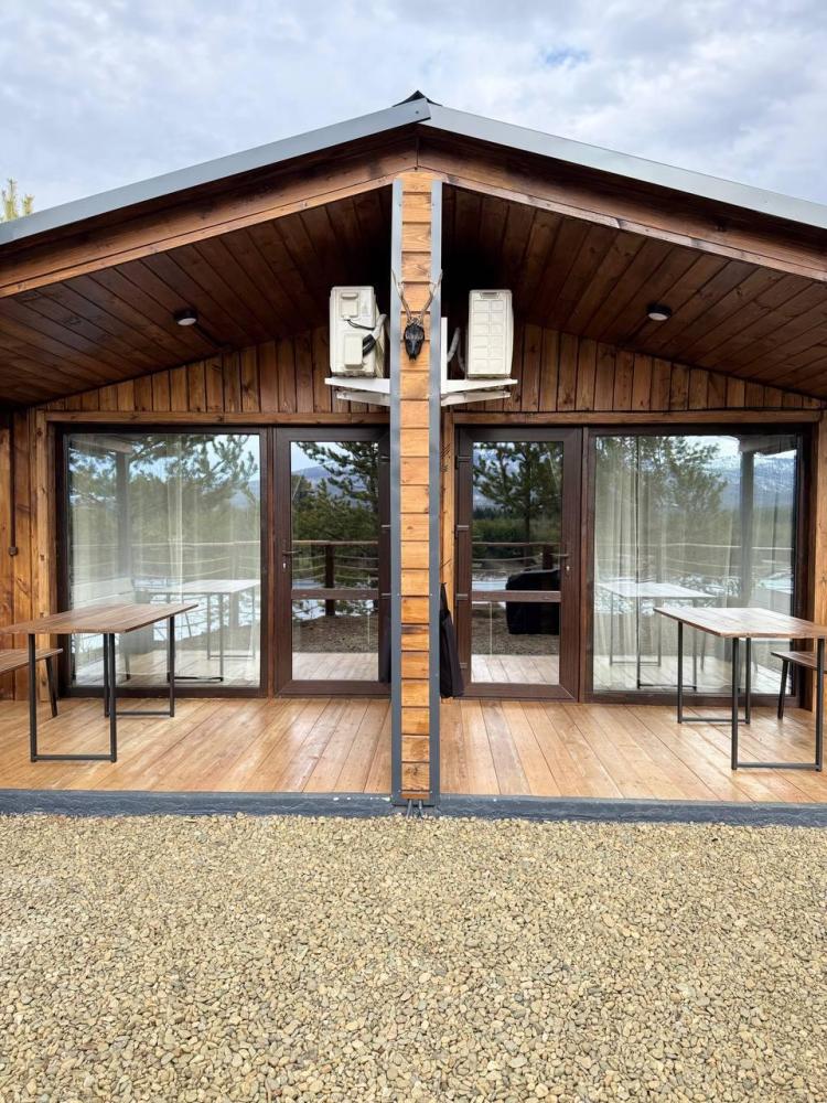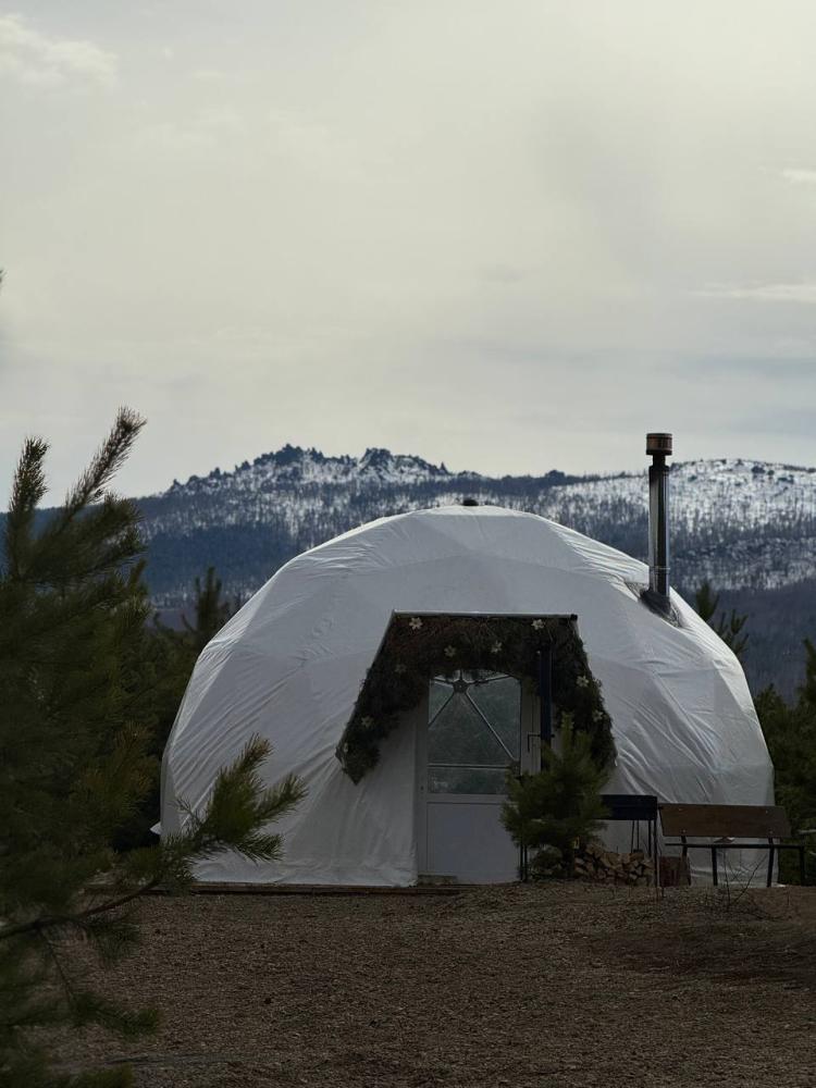 Домик площадью 15 квадратных метров с террасой для размещения до 4-х гостей. В домике есть все необходимое для комфортного пребывания: кухня с микроволновой печью, варочной поверхностью, холодильником, чайником, раковиной и всей необходимой посудой для приготовления. Обеденная зона располагает большим столом и стульями. Спальная зона представлена двуспальной кроватью на первом уровне и еще одной двуспальной кроватью на втором уровне. Каждый домик оборудован санузлом с душевой кабиной. На террасе также имеется стол и скамейка. Около домика расположен мангал.