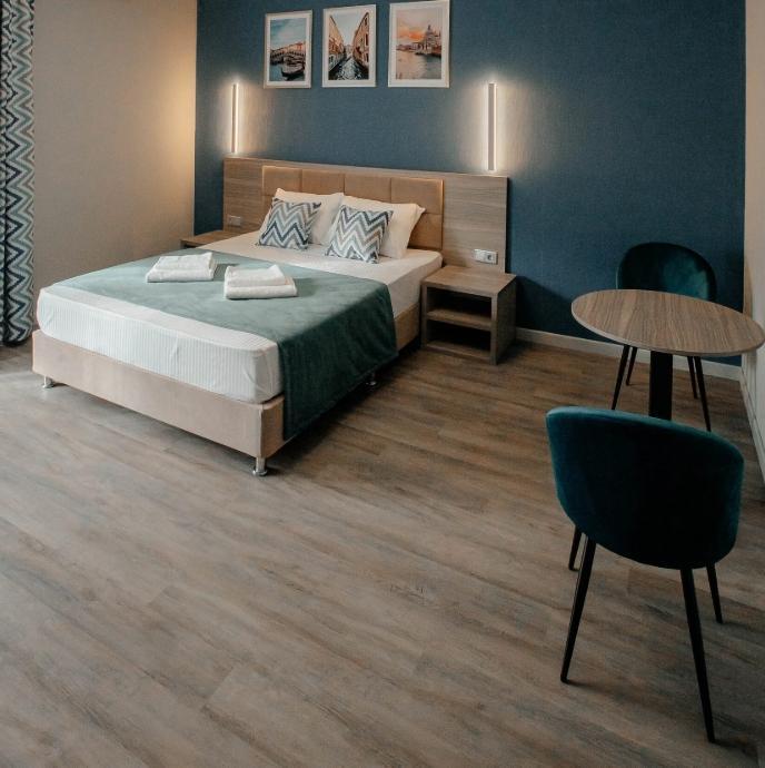 Большой двухкомнатный номер. Двуспальная кровать, мягкая мебель спутниковое телевидение, холодильник, санузел с душевой, постельное белье, полотенца.