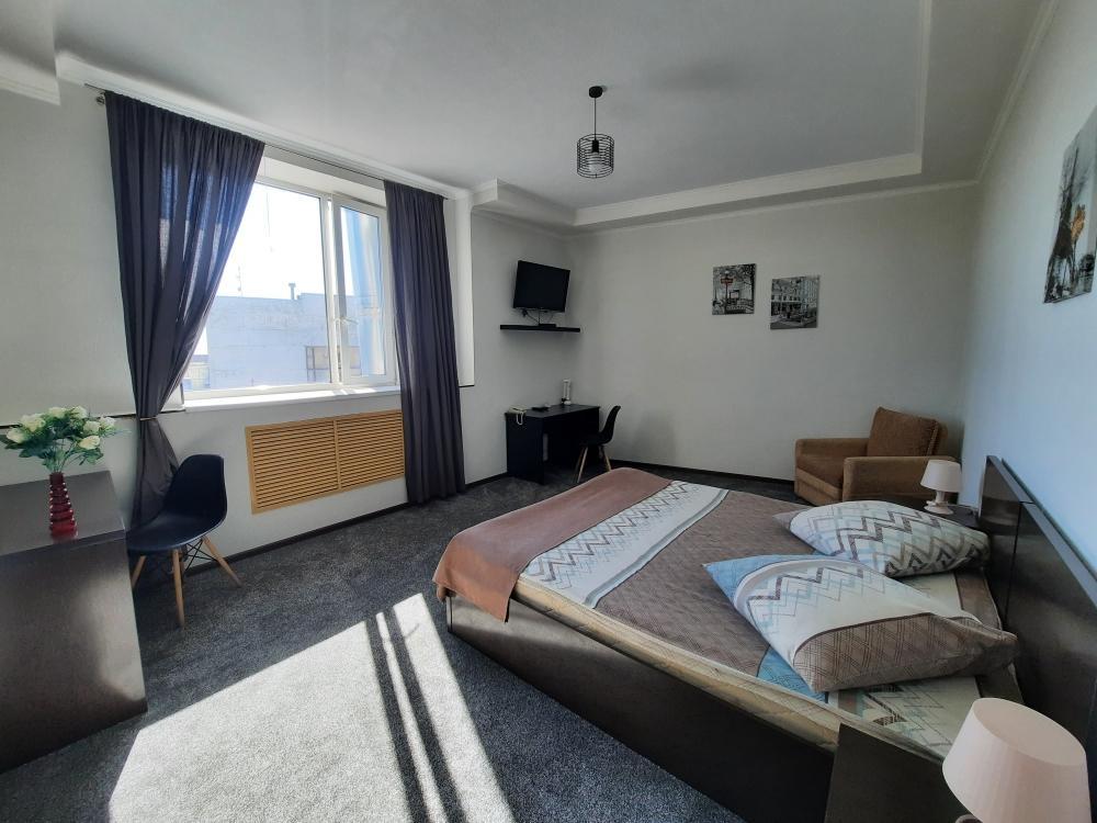 Большой двухкомнатный комфортабельный номер, незаменим для работы и проживания 2-4 гостей.