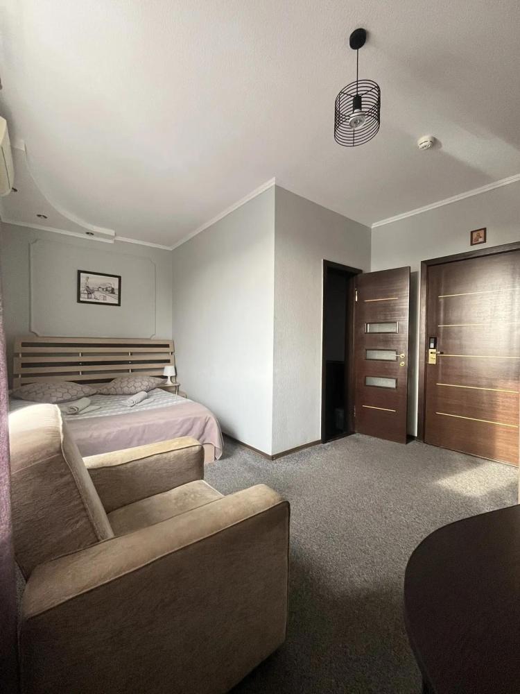 Двухкомнатный комфортабельный номер, идеально подходит для проживания и работы 2 гостей, с возможностью предоставления дополнительного спального места для 3 гостя.