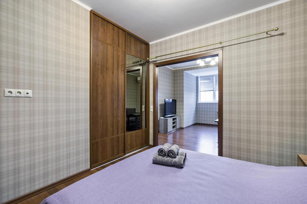 Просторная 1-к квартира с раздельными спальными местами. Здесь есть всё для комфортного отдыха и продуктивной работы. Вместимость квартиры: от 1 до 5 человек Локация — г. Щелково — Ж/Д платформа "Воронок" - 15 минут пешком Преимущества Безналичный расчет с организациями, отчетные документы (БСО/чек онлайн) — Бесконтактное заселение (инструкции приходят в WhatsApp) — Круглосуточное заселение при бронировании до 23:00 — Отличное расположение: удобно добираться в любую точку Москвы — Чистоту и порядок — гарантируем! Мы всегда на связи: ежедневно до 23.00 Что есть в квартире — Техника: кондиционер, холодильник, варочная панель, чайник, микроволновка, стиральная машина, ЖК-телевизор, фен, утюг — Высокоскоростной Wi-Fi — Спальные места: двуспальная кровать 160*200, раскладной двуспальный диван 140*200 (в разложенном виде), кресло-кровать 75*200 (в разложенном виде) — Чистое постельное белье и полотенца на каждого гостя — Сушилка для белья, гладильная доска — Полностью оборудованная кухня, вся необходимая посуда. Чай, сахар. Обеденная зона — Средства гигиены (шампунь, гель для душа, жидкое мыло, одноразовые зубные щетки, паста) Правила проживания — Обязательный возвратный залог (оплачивается до заезда, возвращается в день выезда до 20:00) —Проживать может только то количество гостей, которое было указано в бронировании Заезд: с 14:00 | Выезд: до 12:00 Ранний заезд и поздний выезд — по предварительной договорённости Курение в квартире строго запрещено Режим тишины с 22:00 до 09:00 Запрещено: проведение вечеринок, мальчишников/девичников Рядом торговый центр Ладья, Ледовый дворец, река Клязьма, музей, кафе, аптека, кинотеатр, Краснознаменский сквер, магазины, свободные парковочные места, остановки общественного транспорта, щелковская больница, щелковский парк, парк Солнечных часов