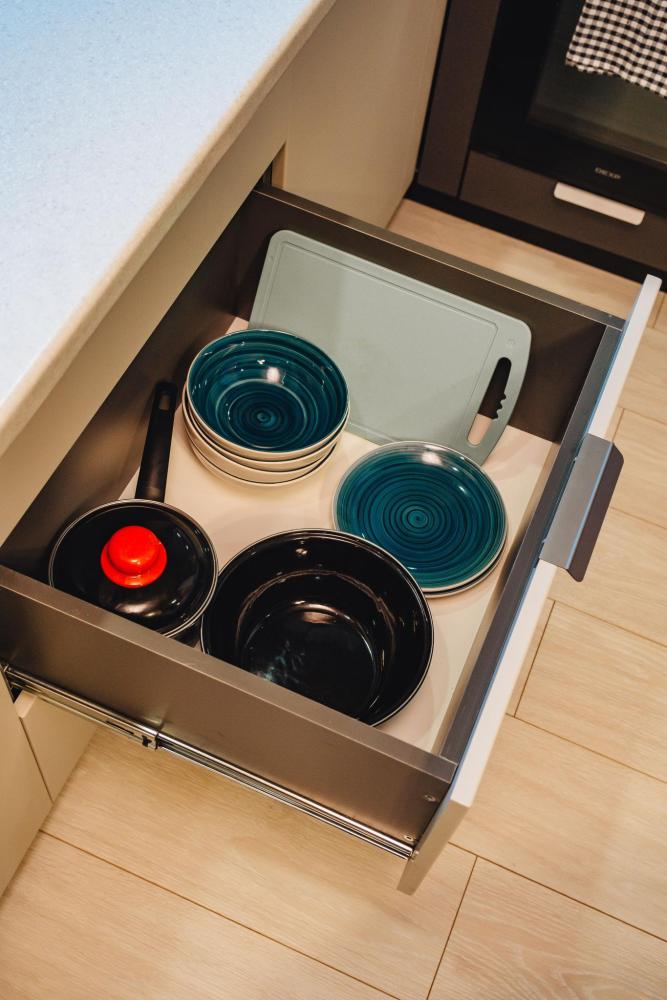 Можно! В квартире есть все, что может понадобиться для приготовления еды. Также есть вся посуда для комфортного проживания: ножи, столовые приборы на 4 человека, кастрюли, сковородки, тарелки, бокалы и многое другое включено, если снять студию у нас.