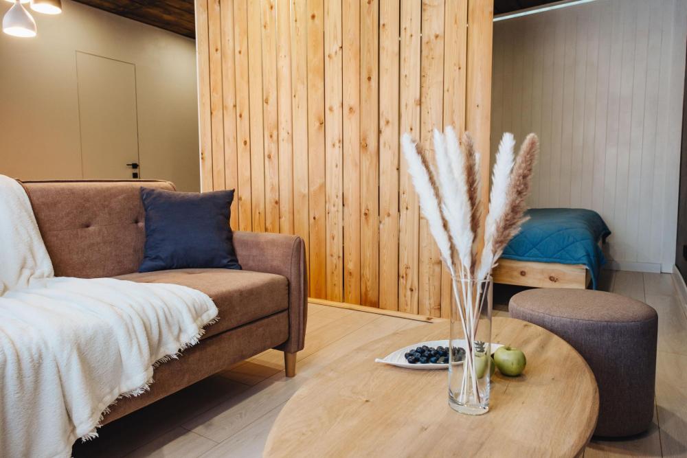 Студия подойдет для пары или для небольшой семьи до 4-ех человек.