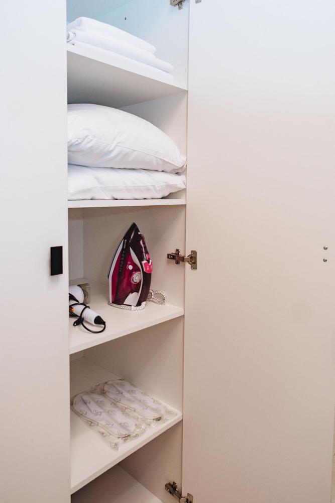Телевизор, фен, утюг и гладильная доска, сушилка.
