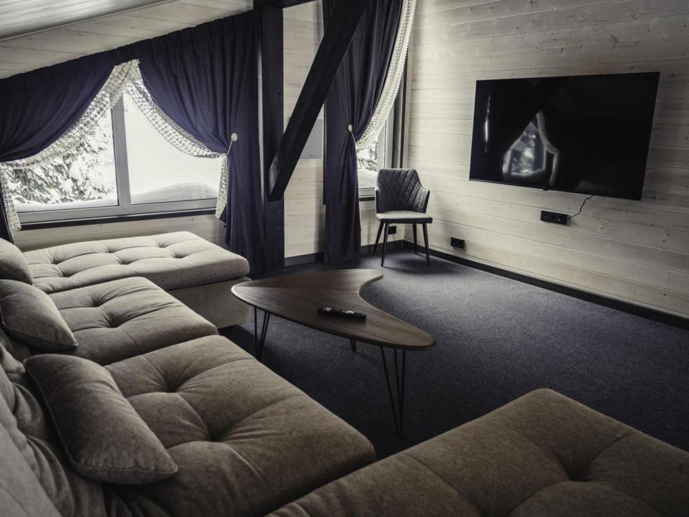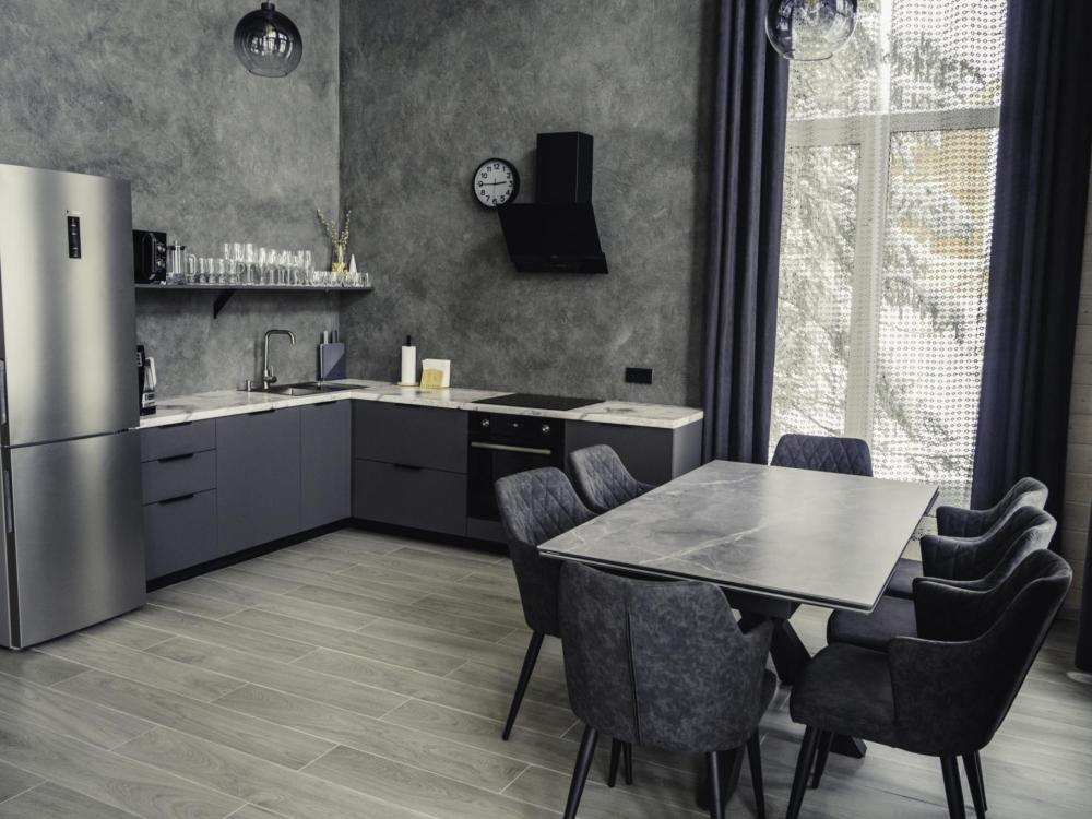 Двухэтажный дом с видом на горные вершины с размещением до 10 гостей. В доме панорамные окна, теплые полы, регуляторы температуры в каждой комнате. На первом этаже: входная зона ( стойка для сушки обуви на 8 пар, система хранения для одежды). Просторная гостиная: вместительный обеденный стол(разбирается), комфортный диван, телевизор со smart-tv. Кухонная зона оборудована всем необходимым: микроволновая печь, духовой шкаф, кофемашина, холодильник, варочная панель, все для приготовления еды и красивой сервировки. Две спальни с двуспальными кроватями, системой хранения и прикроватными тумбами. Санузел с душем, феном и туалетно-косметическими принадлежностями. На втором этаже расположены: спальня с двуспальной кроватью, системой хранения и прикроватными тумбами. ТВ-зона с диваном, телевизором и кофейным столиком, второй санузел с душем.