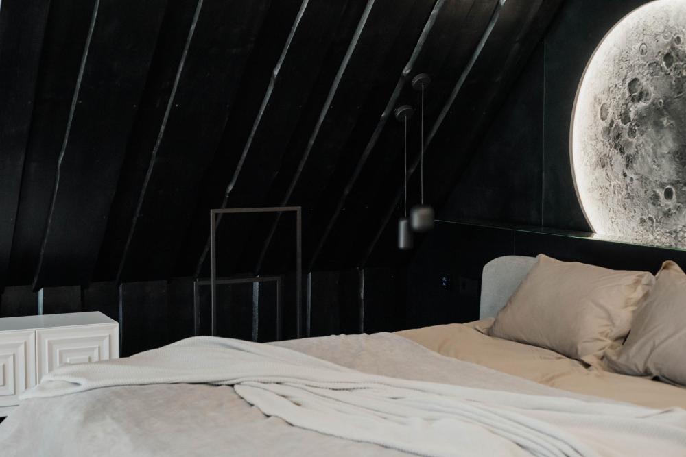 Дом создан для компаний до шести человек, но ощущение уединения здесь — космическое. Комната с двуспальной кроватью, второй этаж - открытая комната с двуспальной кроватью, большой диван в холле, полностью оборудованная кухонная зона, система "умный дом", два санузла.