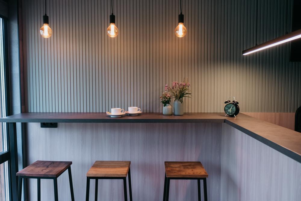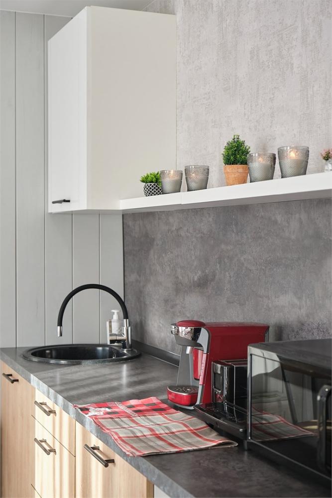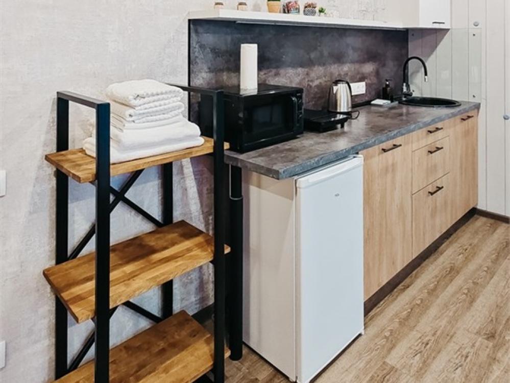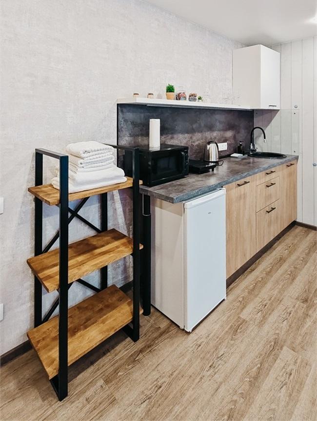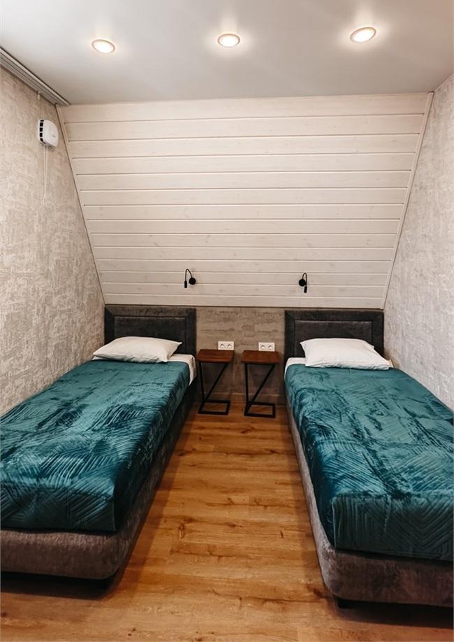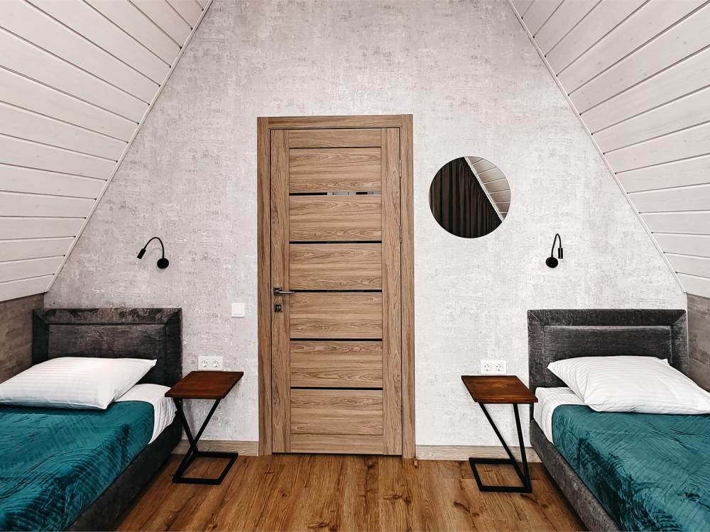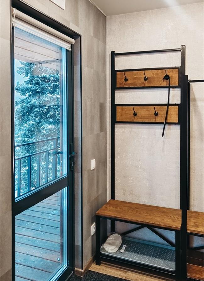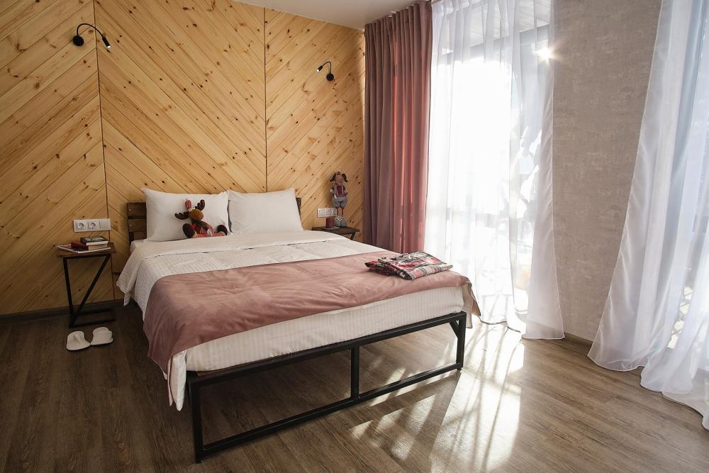 Номер студия общей площадью 25 кв.м. для размещения до 3-х гостей. В номерах выполнен стильный дизайнерский ремонт с применением качественных строительных и отделочных материалов. Современные инженерные технологии позволяют обеспечивать в номерах комфортную температуру и климат. Витражное остекление в пол наполняет студию светом, создавая атмосферу воздушности и лёгкости. Из окон открывается вид на хвойный лес и заснеженные вершины гор с одной стороны и уютный внутренний двор с балконом с другой стороны.