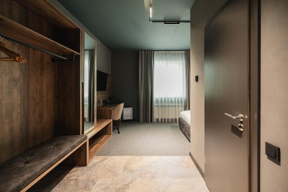 В номере площадью 22 квадратных метра с продуманной планировкой и дизайном в скандинавском стиле комфортно разместятся две персоны. В номере удобная двуспальная кроватью king-size с ортопедическим матрасом премиум-класса и рабочая зона с вместительным шкафом. Ванная комната оснащена ванной, просторной раковиной с зеркалом и подсветкой и укомплектована премиальным набором аксессуаров гостеприимства. Качественное постельное белье, воздушные одеяла и подушки, а также уютный махровый халат и тапочки, никого не оставят равнодушными.