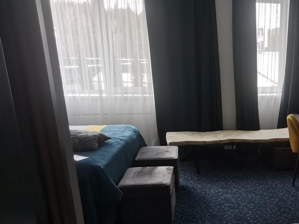 Просторный однокомнатный номер с двуспальной и одной односпальной кроватями, плюс раскладной пуф. В номере уютная атмосфера: мягкие матрасы, теплый пол, заготовлен комплект гигиенических средств.