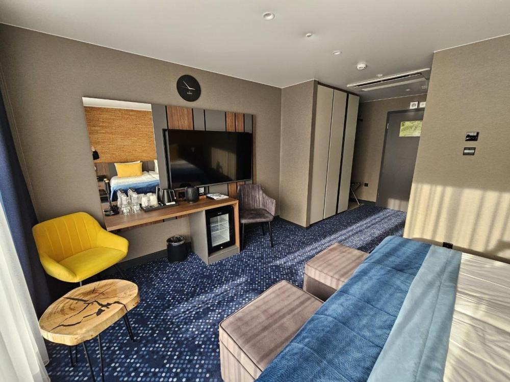 Номер выполнен в современном Лофт-стиле и оснащен всем необходимым для комфортного пребывания: мини-бар, сейф, теплый пол, сушилка для ботинок, базовые комплекты гигиенических средств и пр. В номере присутствует регулировка температуры с помощью системы "умный дом". Голосовое управление номеров - колонка. Ремонт в 2024 году.