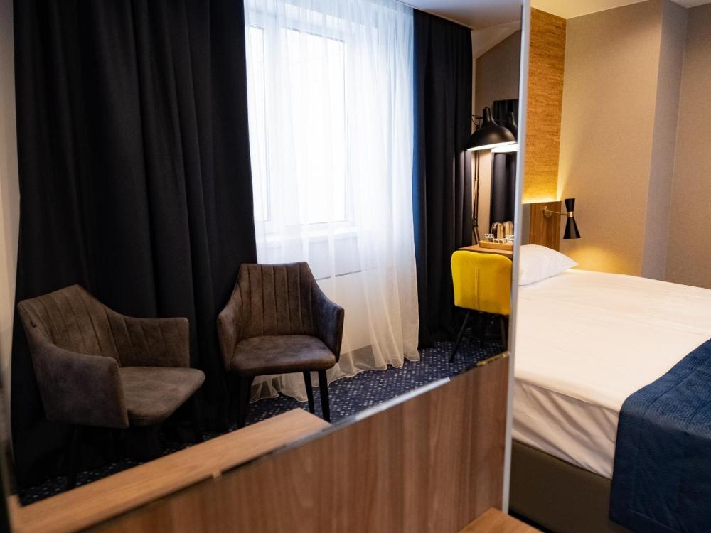 Номера с одной двуспальной или двумя односпальными кроватями. Номер выполнен в современном Loft-стиле и оснащен всем необходимым для комфортного пребывания: мини-бар, сейф, теплый пол, сушилка для ботинок, базовые комплекты гигиенических средств и пр. В номере присутствует регулировка температуры с помощью системы "умный дом".
