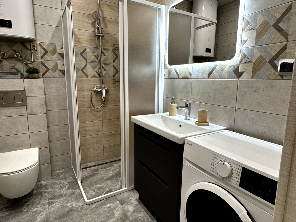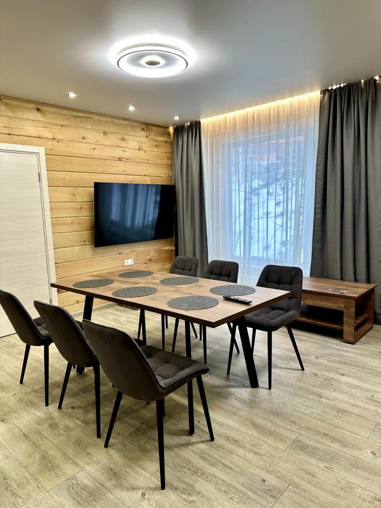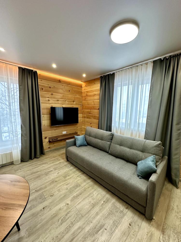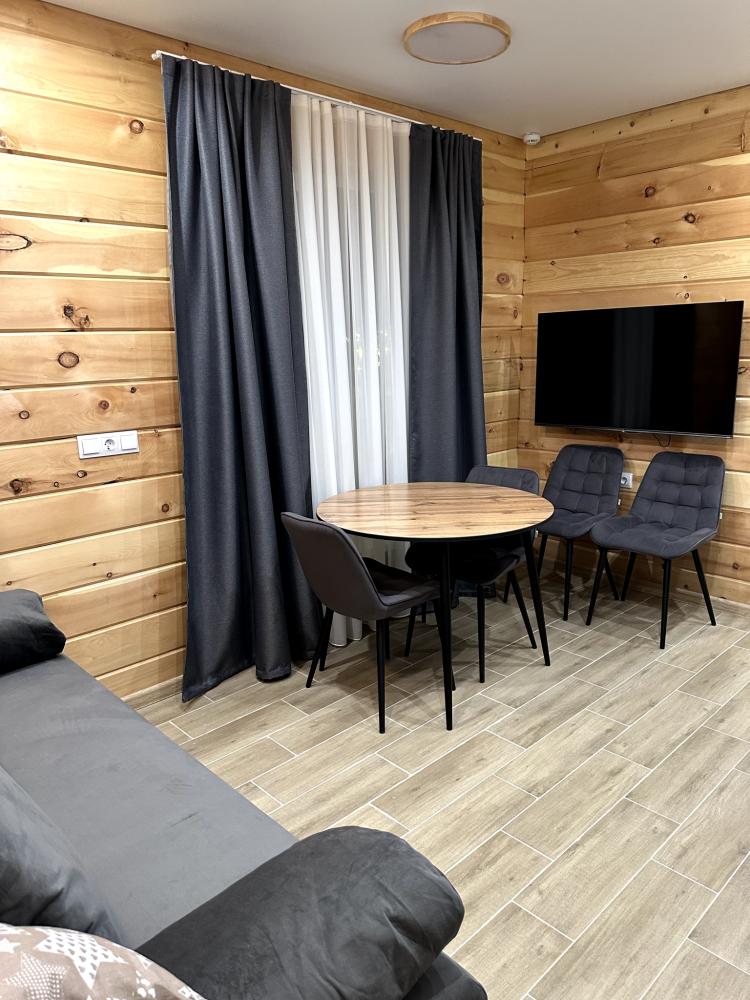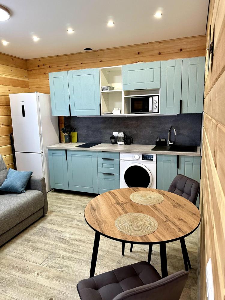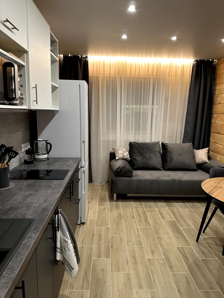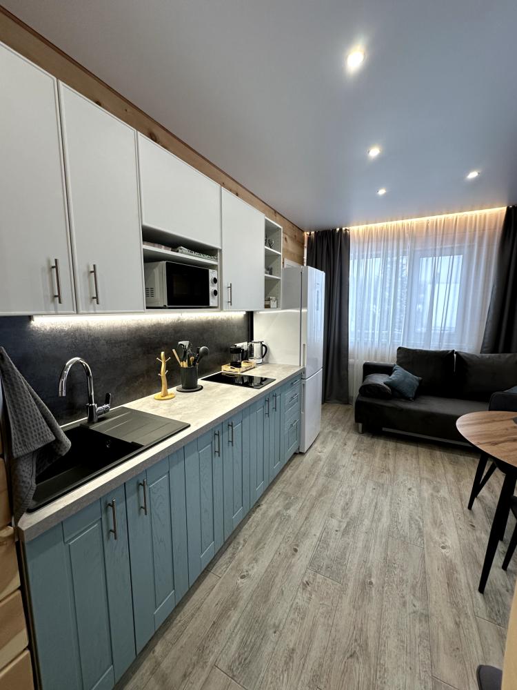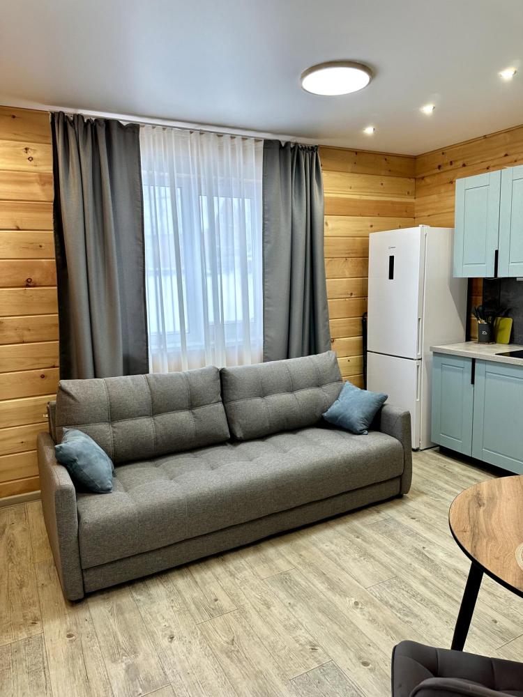 Однокомнатный номер студия. Подходит для размещения до 2х человек. В номере есть все необходимое для комфортного проживания: двуспальная кровать, которая трансформируется в две односпальные, диван на 2 спальных места, WI-FI, телевизор, оборудованная зона кухни: холодильник, плита, микроволновая печь, посуда для приготовления и сервировки, санузел с душевой кабиной, фен.