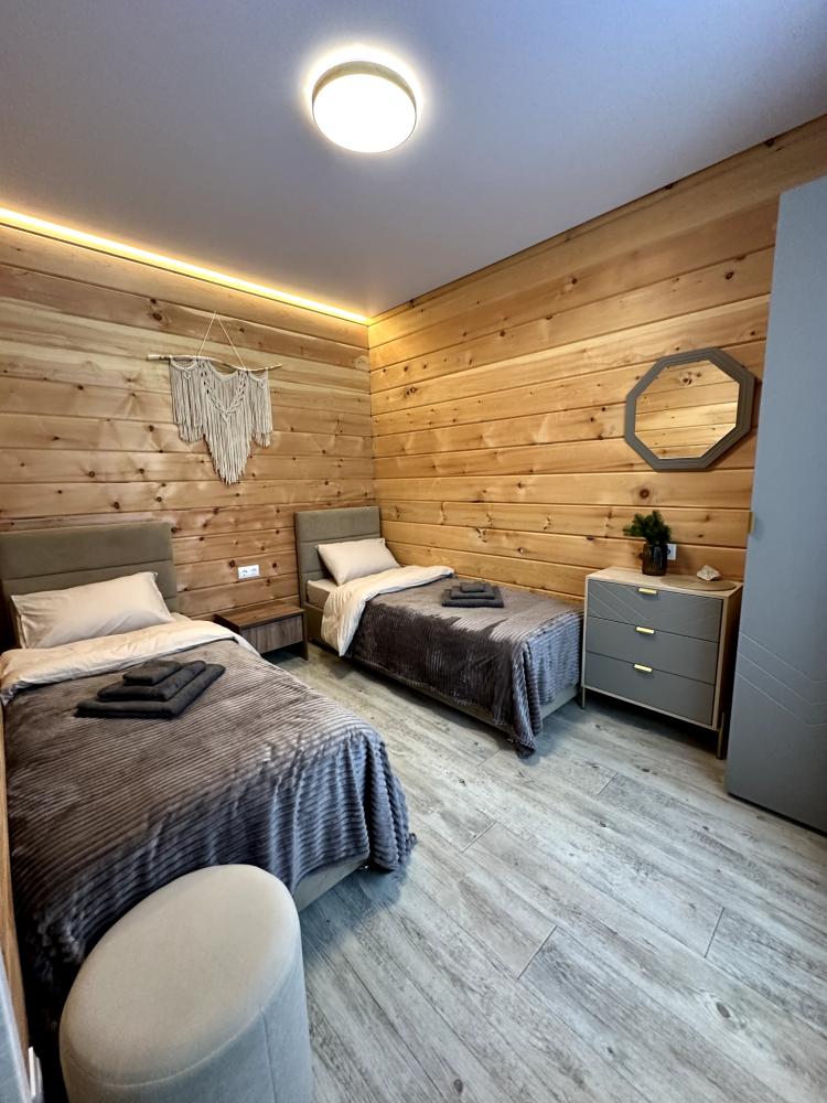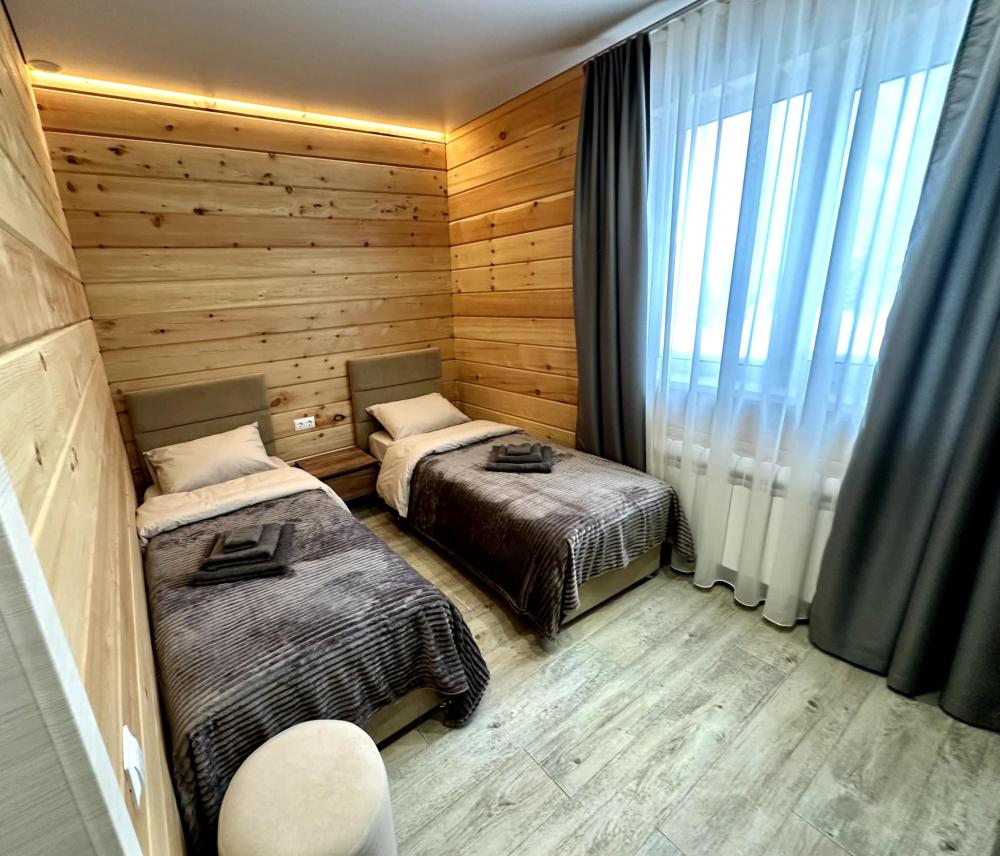 Двухкомнатный номер стандарт. Подходит для размещения до 4х человек. В номере есть все необходимое для комфортного проживания: двуспальная кровать, две односпальные, WI-FI, телевизор, оборудованная зона кухни: холодильник, плита, микроволновая печь, посуда для приготовления и сервировки, санузел с душевой кабиной, фен.