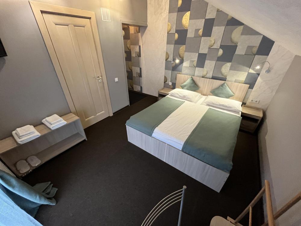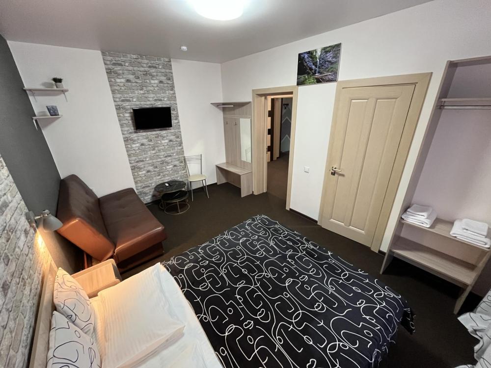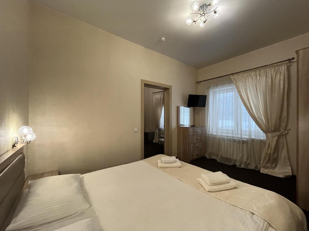 Номера данной категории расположены на втором и третьем этажах. В каждом номере ТВ, Wi-Fi, стол, два стула, открытый шкаф с полками, вешало для одежды, диван для отдыха, двуспальная кровать с ортопедическим матрасом. Санузел совмещенный, душевая кабинка, фен, косметические и гигиенические средства, комплект полотенец, тапочки, полотенцесушитель, зеркало с подсветкой. Дополнительные места не предусмотрены.