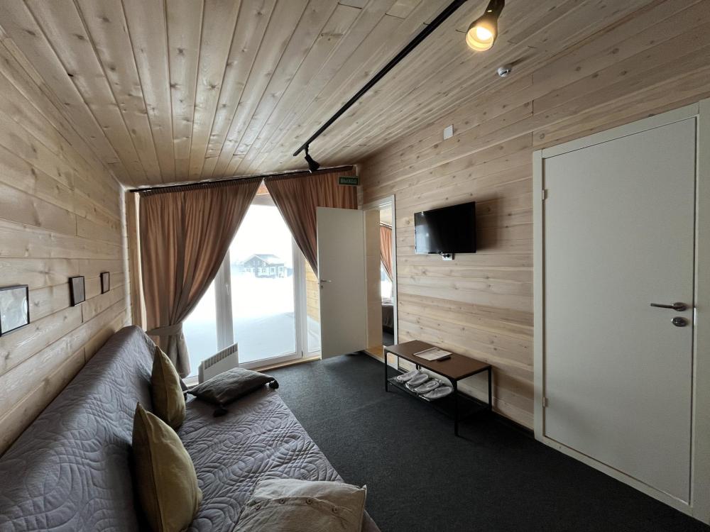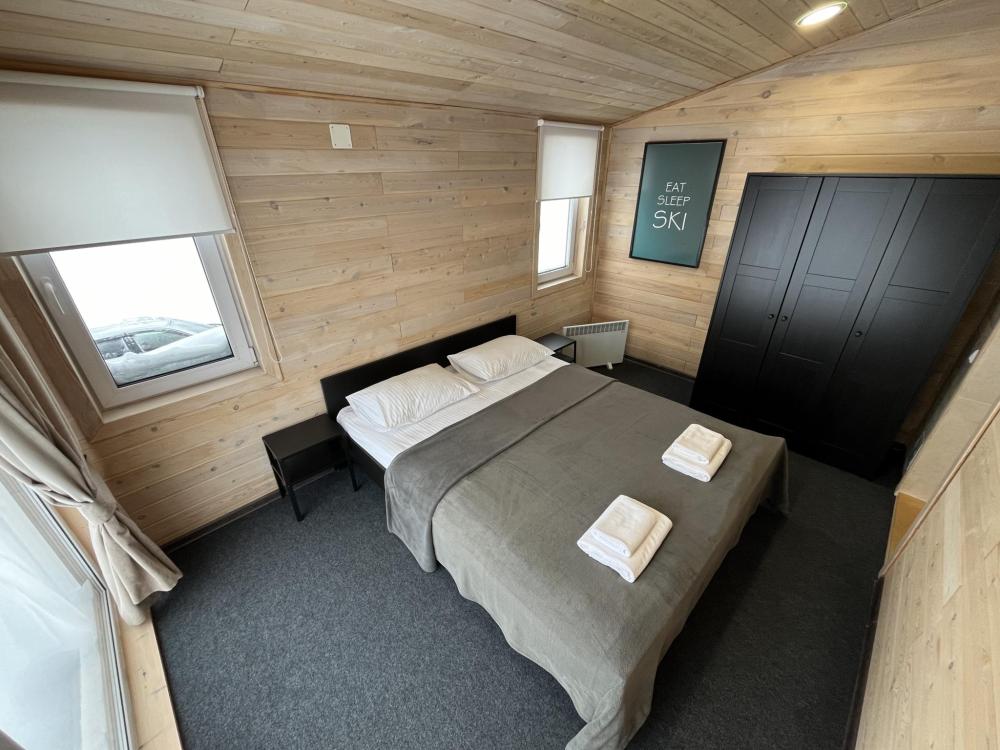 Просторный номер с панорамными окнами и чудесным видом на гору «Зеленая». Расположен на втором этаже спортивно-учебного центра. Большая двуспальная кровать с ортопедическим матрасом, шкаф, вешало для одежды, диван и тахта для отдыха, стол, стулья, тумба для багажа, чайный столик, кондиционер, ТВ ,Wi-Fi, электрический чайник с чайными парами. Санузел совмещенный, душевая кабина, фен, косметические и гигиенические средства, комплект полотенец, халаты, тапочки, полотенцесушитель, зеркало. Дополнительные места не предусмотрены.