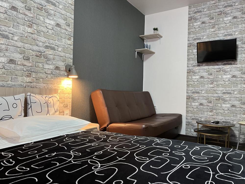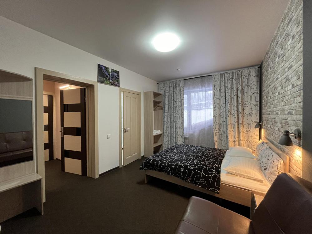 Номер данной категории расположен на втором этаже ТВ, Wi-Fi, стол, два стула, шкаф для одежды, тахта для отдыха, багажная тумба, двуспальная кровать с ортопедическим матрасом. Электрический чайник с чайными парами. Санузел совмещенный, душевая кабина, фен, косметические и гигиенические средства, комплект полотенец, тапочки, полотенцесушитель, зеркало с подсветкой. Дополнительные места не предусмотрены.