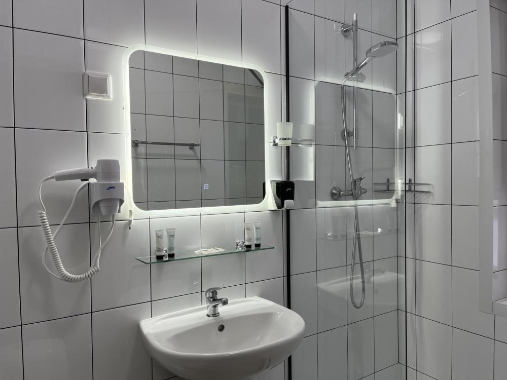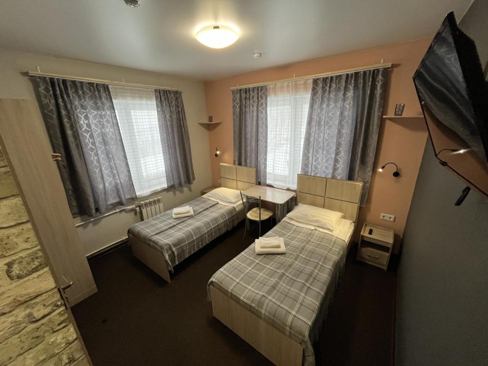 Номера данной категории расположены на втором и третьем этажах. В каждом номере ТВ, Wi-Fi, стол, два стула, открытый шкаф с полками, вешало для одежды, ортопедический матрас. Санузел совмещенный, душевая кабинка, фен, косметические и гигиенические средства, комплект полотенец, тапочки, полотенцесушитель, зеркало с подсветкой. Предлагаем на выбор номера с двумя односпальными кроватями либо одной двуспальной. Дополнительные места не предусмотрены.