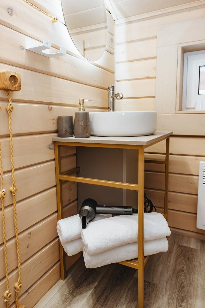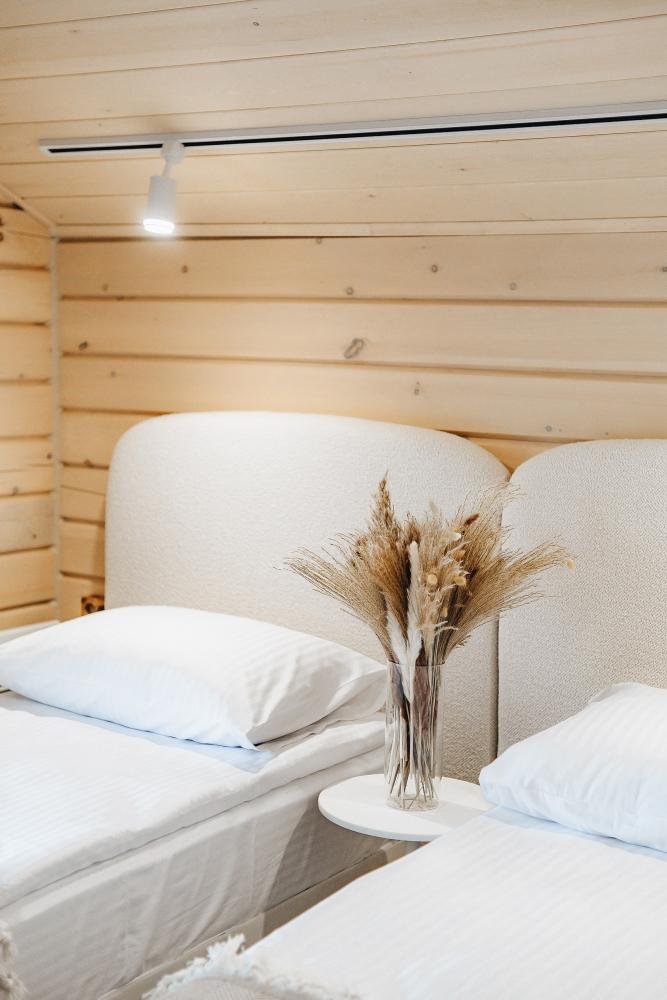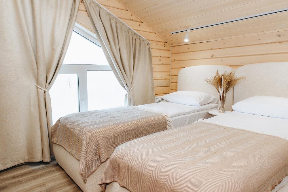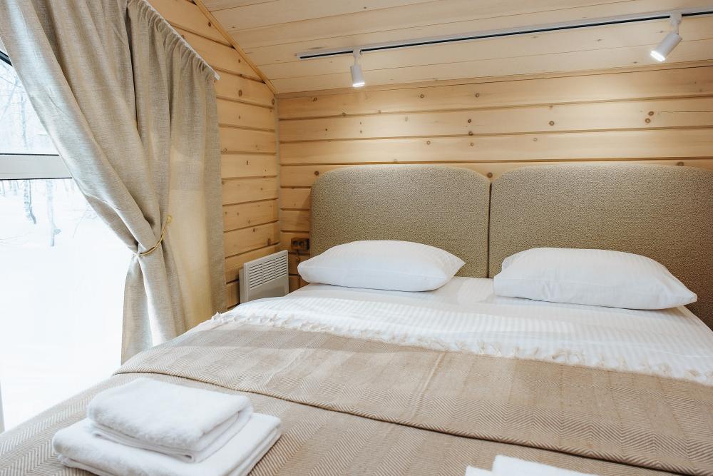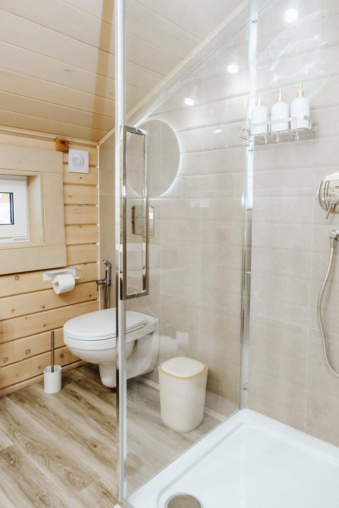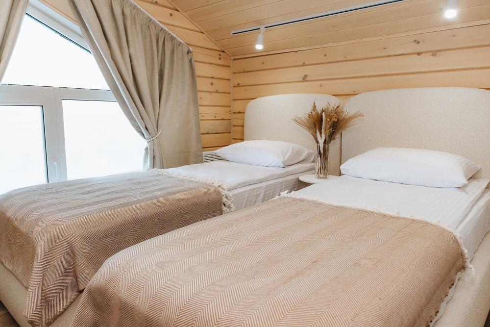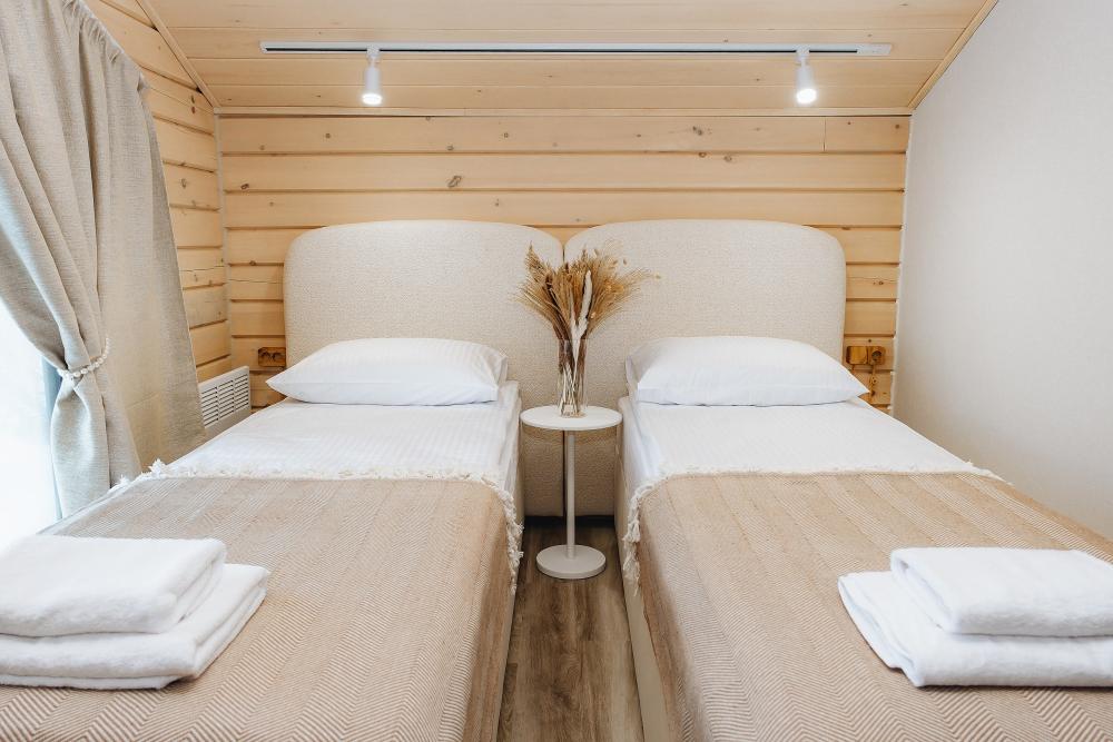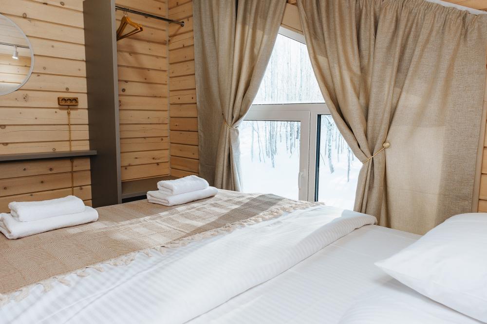 В входной группе расположена гардеробная зона в которой есть: стиральная машина, сушилки для обуви. На первом этаже расположены: солнечная гостиная, обеденная зона с большим столом, площадью 50кв2м, выполненная в светлых тонах, 2 стильных дивана, которые при необходимости легко трансформируется в спальные места, огромный телевизор диагональ 85 дюймов, колонка Алиса. Просторная кухонная зона оснащена современной техникой имеются все необходимые мелочи. Для комфортного отдыха и вкусных блюд кухня оснащена: духовой шкаф; большая варочная панель; микроволновая печь; посудомоечная машина; большой холодильник; чайник; СВЧ печь; кофемашина; тостер; столовые приборы и посуда. Полноценный санузел. На второй этаж ведет лестница с подсветкой. На втором этаже расположены: 4 спальни мансардного типа с панорамным видом. Эргономичная мебель и дизайнерский интерьер создают атмосферу спокойствия и релаксации. Белоснежное постельное белье и мягкие полотенца премиального качества. 2 полноценных ванных комнаты.