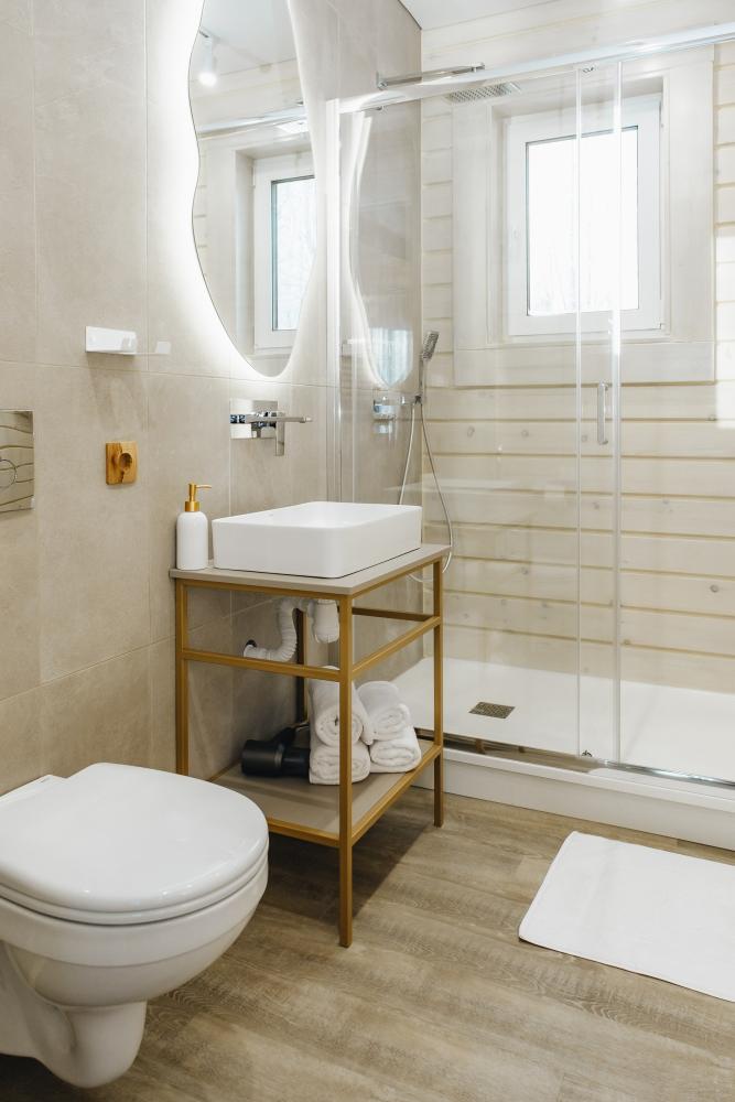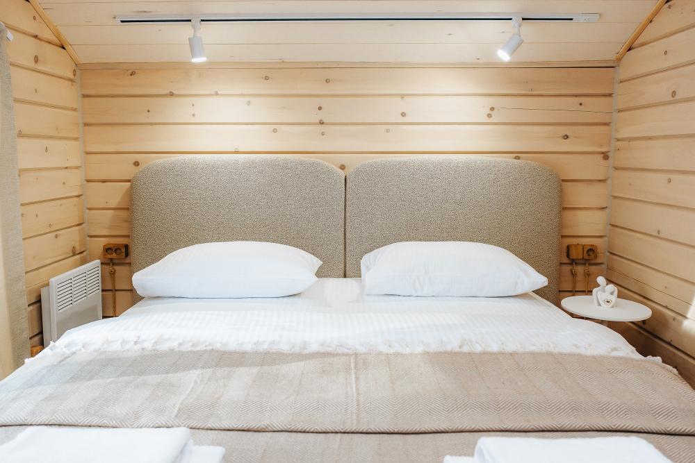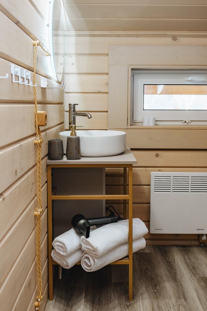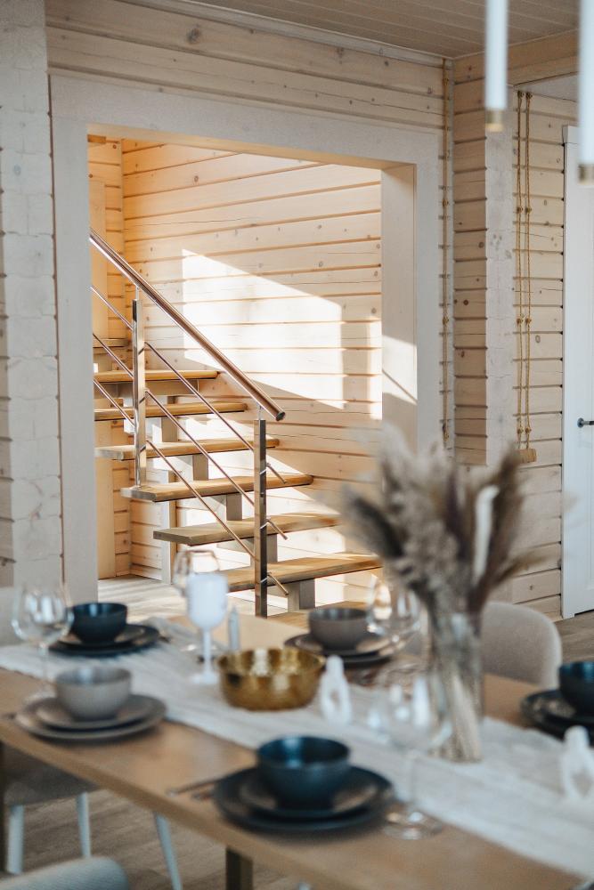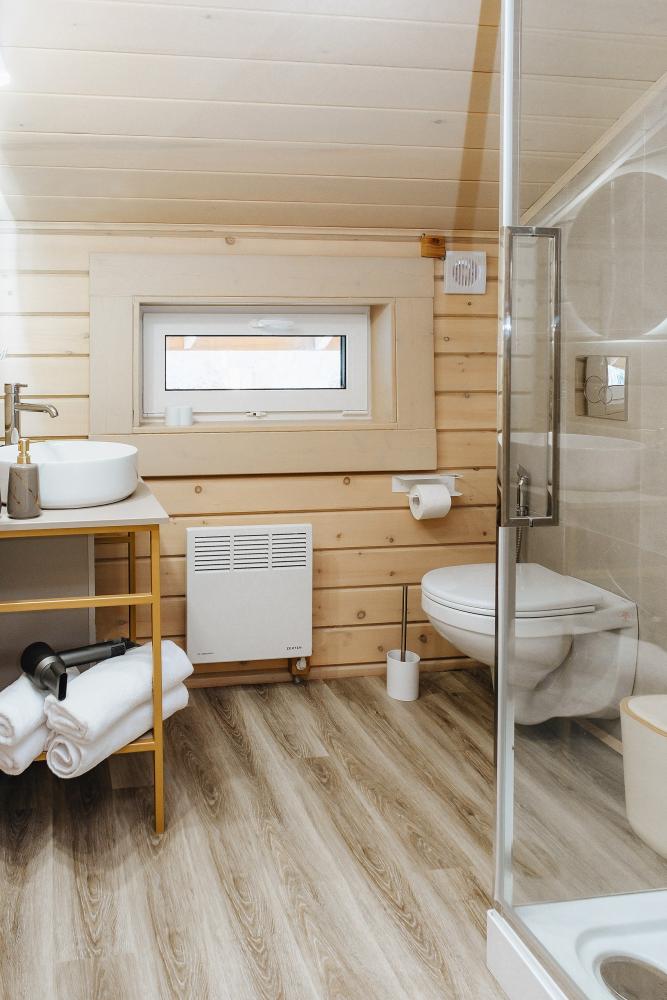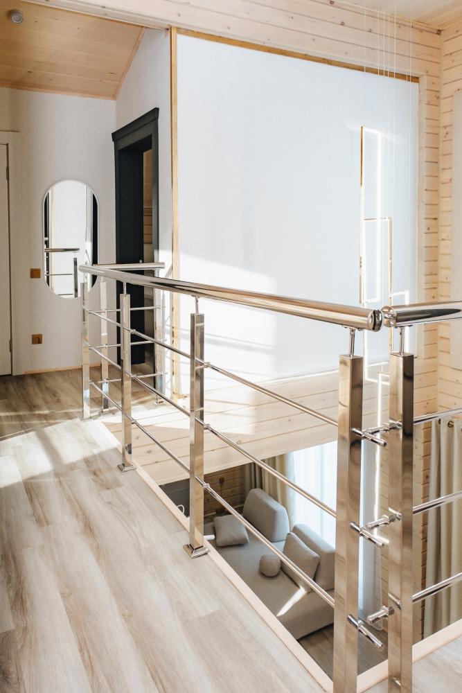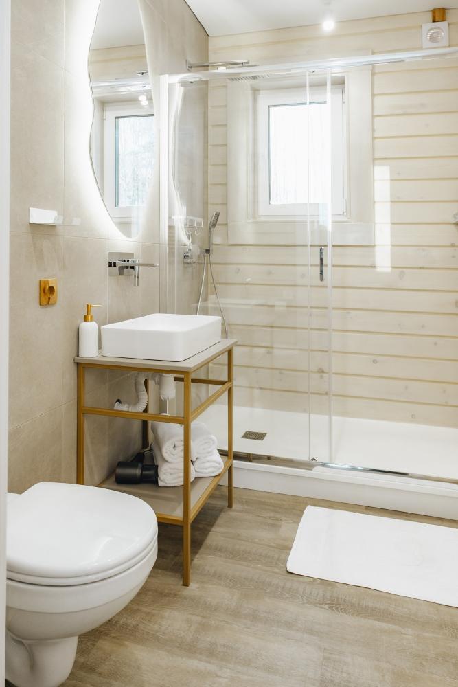 В входной группе расположена гардеробная зона в которой есть: стиральная машина, сушилки для обуви. На первом этаже расположены: солнечная гостиная, обеденная зона с большим столом, площадью 50кв2м, выполненная в светлых тонах, 2 стильных дивана, которые при необходимости легко трансформируется в спальные места, огромный телевизор диагональ 85 дюймов, колонка Алиса. Просторная кухонная зона оснащена современной техникой имеются все необходимые мелочи. Для комфортного отдыха и вкусных блюд кухня оснащена: духовой шкаф; большая варочная панель; микроволновая печь; посудомоечная машина; большой холодильник; чайник; СВЧ печь; кофемашина; тостер; столовые приборы и посуда. Полноценный санузел. На второй этаж ведет лестница с подсветкой. На втором этаже расположены: 4 спальни мансардного типа с панорамным видом. Эргономичная мебель и дизайнерский интерьер создают атмосферу спокойствия и релаксации. Белоснежное постельное белье и мягкие полотенца премиального качества. 2 полноценных ванных комнаты.