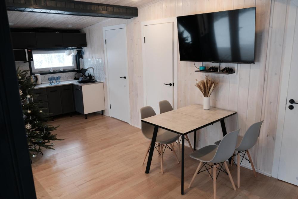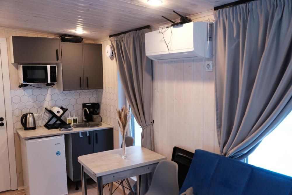 Комфортное размещение для 4х человек . 1 изолированная спальня и 2 дополнительных места на раскладном диване в гостиной. Оснащение дома: Wi-fi, Колонка Алиса, настольные игры для вечернего досуга. В зоне гостиной раскладной диван, шкаф, кондиционер и телевизор-смарт. Кухня оборудована бытовой техникой и посудой на 6 персон: обеденная зона, холодильник, настольная электрическая плита, микроволновая печь, чайник, кофеварка, небольшой запас чая и кофе. 1 совмещенный санузел с душевой. Гостям предоставляются полотенца, халаты и средства гигиены (гель для душа, шампунь, бальзам). Также в доме : стиральная машинка (гель для стирки), фен. Так же в доме есть бытовые мелочи :кухонные полотенца, мусорные мешки, туалетная бумага, средство для мытья посуды, губки, тряпочки, салфетки.