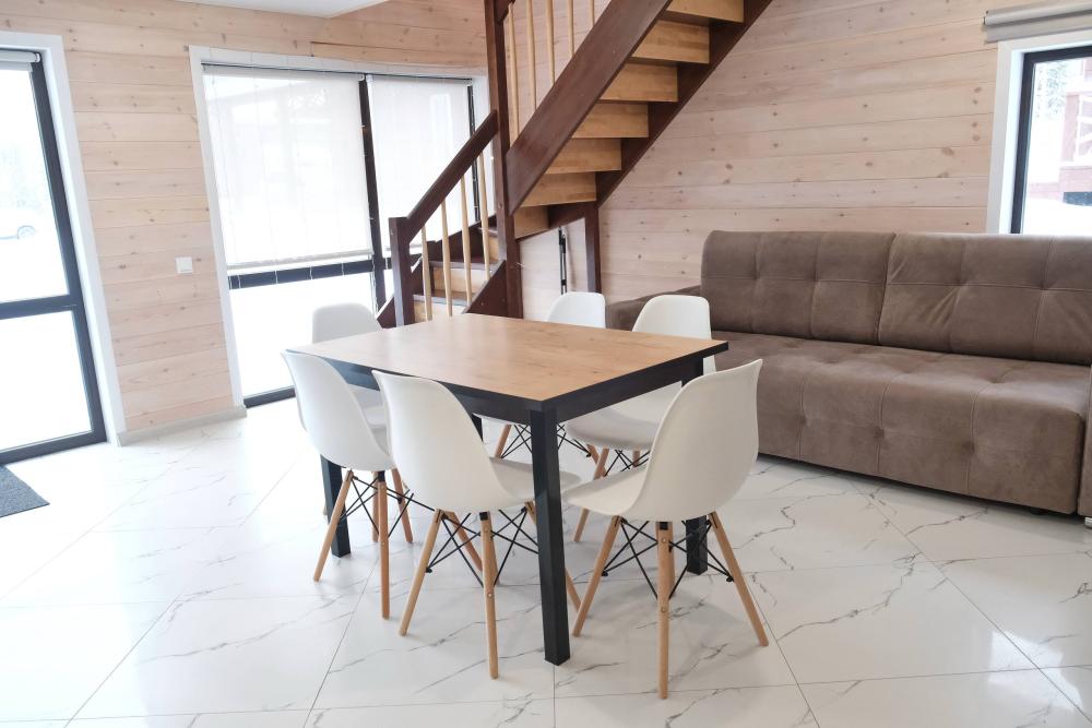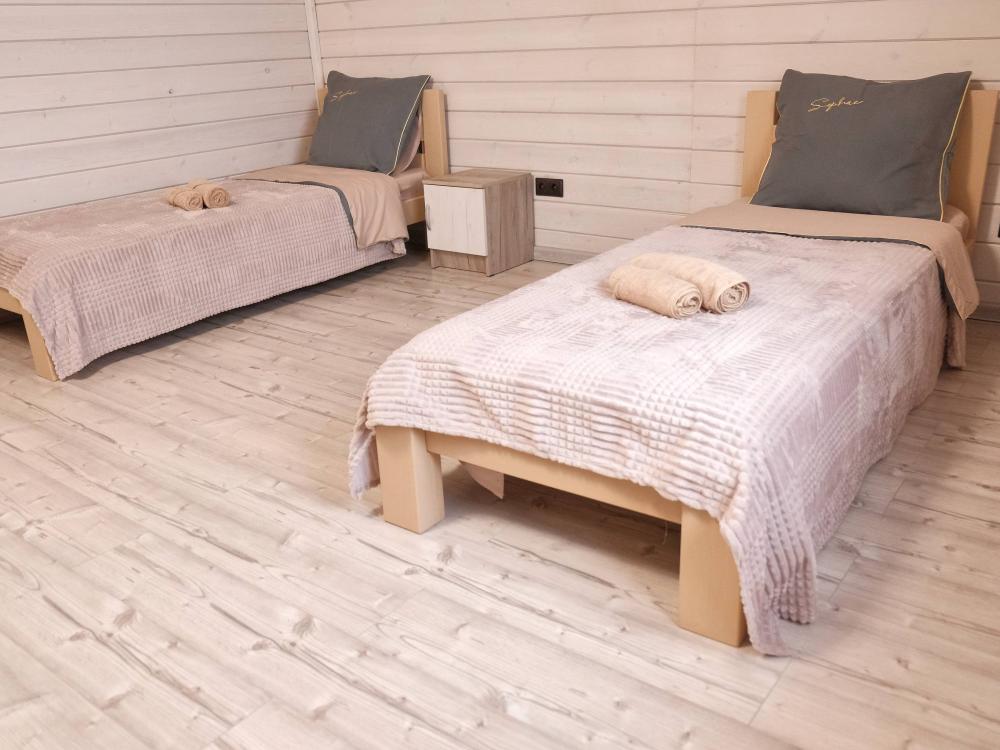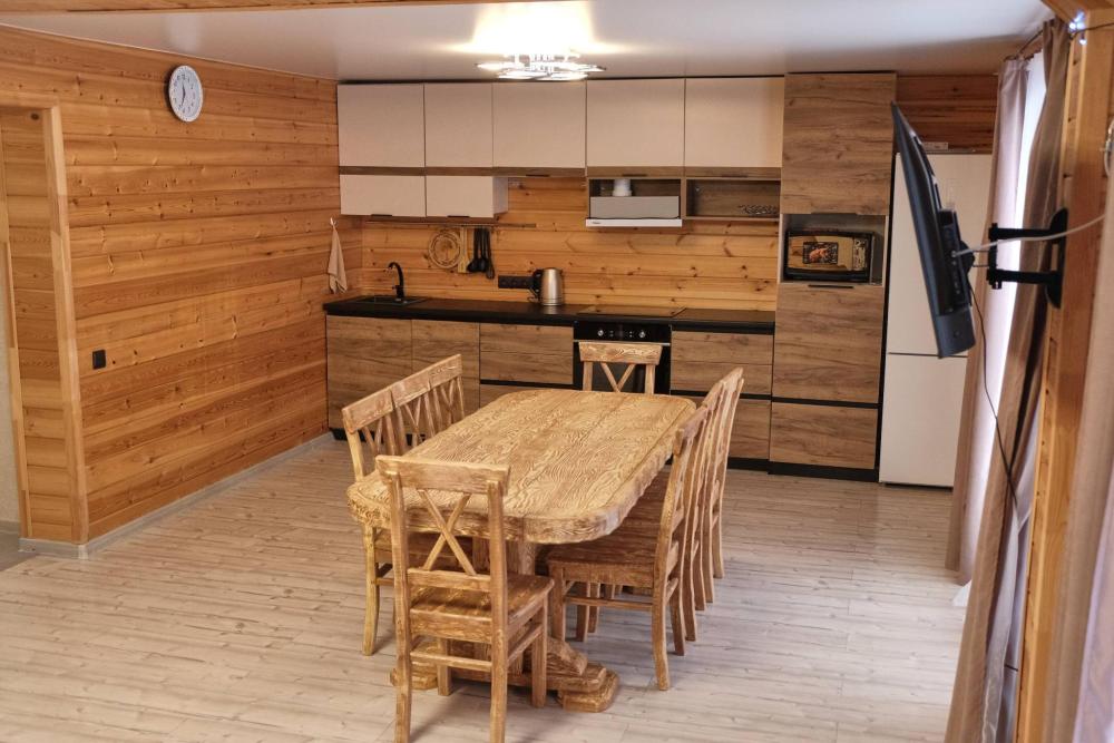 Данный дом комфортно рассчитан на 6 человек, также можно разместить 2 человека на диване в кухне гостиной (в доме 3 спальни с двуспальными кроватями и диван на первом этаже). 2 санузла с душевыми. Первый этаж : зона раздевалки, санузел с душевой кабиной, спальная комната с двухспальной кроватью, кухня-гостинная, пластиковые окна, теплые полы. Гостиная: большой, удобный диван и Smart телевизор. Кухня: варочная панель, духовой шкаф, посудомоечная машина, холодильник, микроволновая печь, чайник, вся необходимая посуда. Гладильная доска, фен, сушилка. Второй этаж: 2 просторных спальни с двуспальные кроватями, санузел с душевой кабиной. Возле дома большая территория для парковки машин и мангальная зона.