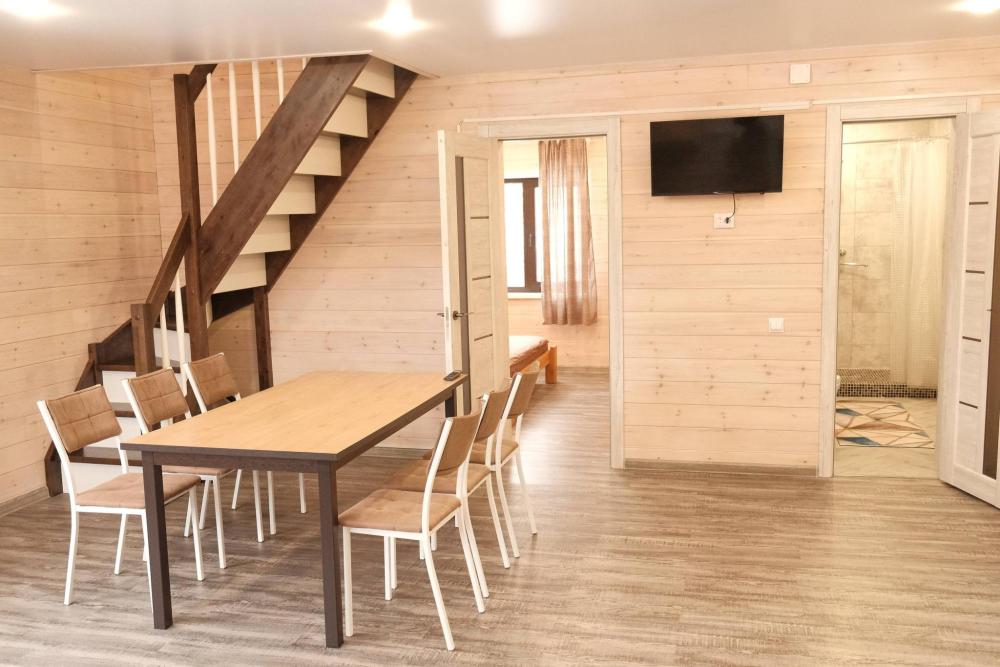 Данный дом комфортно рассчитан на 8 человек, также можно разместить 4 человека на диванах (в доме 4 спальни- 3 двуспальные кровати и 2 раздельные кровати) диван на первом этаже и диван на втором этаже). 2 санузла- 1 санузел совмещенный с душевой, 1 санузел. Первый этаж: зона раздевалки, санузел с душевой кабиной, спальная комната с двухспальной кроватью и детской кроваткой для маленьких гостей, кухня-гостинная, пластиковые окна, теплые полы. Гостиная: большой и удобный диван, телевизор, Bluetooth- колонка. Кухня: варочная панель, посудомоечная машина, холодильник, микроволновая печь, чайник, вся необходимая посуда. Гладильная доска, фен, сушилка. Второй этаж: 3 просторных спальни(в двух комнатах двухспальные кровати, в одной две раздельные кровати), в каждой спальне есть телевизоры) в холе второго этажа раскладной диван как дополнительно место, санузел. Возле дома большая территория для парковки машин и мангальная зона. С балкона второго этажа потрясающий вид на гору.