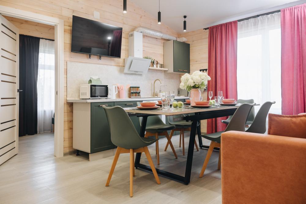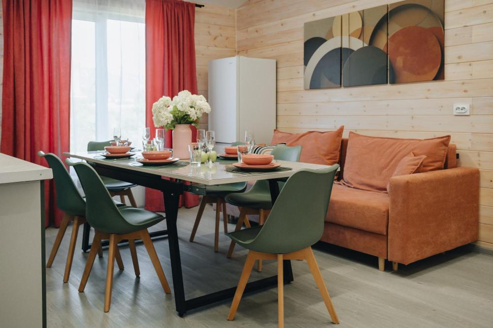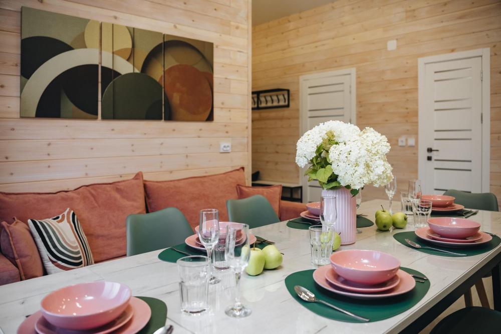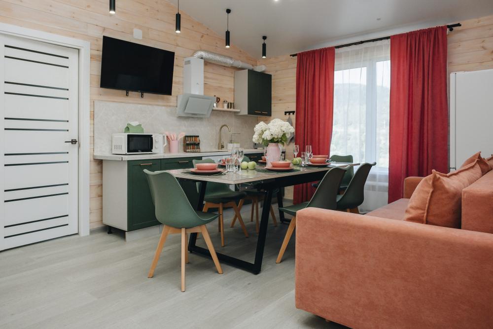 Мы позаботились о комфорте наших гостей: в домиках есть холодильник, микроволновая печь, чайник, теплые полы, плита, стиральная машина,посудомоечная машина,сушилки для обуви, фен, пылесос. В вашем распоряжении матрасы, подушки, одеяла, постельное белье, полотенца и все средства гигиены,зубные наборы,сланцы. В доме есть бесплатный WI-FI.