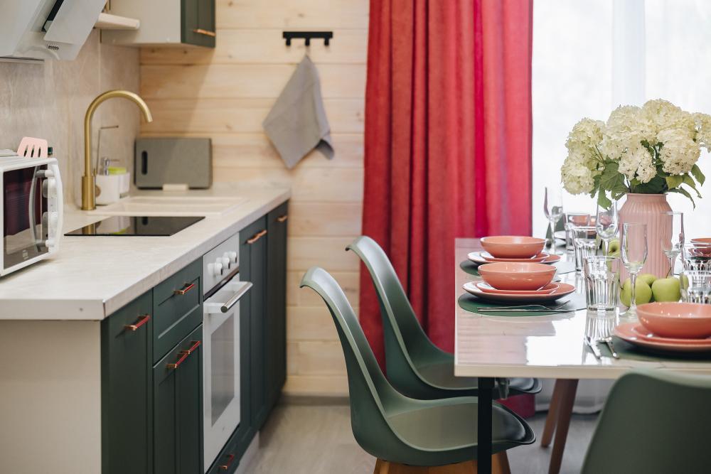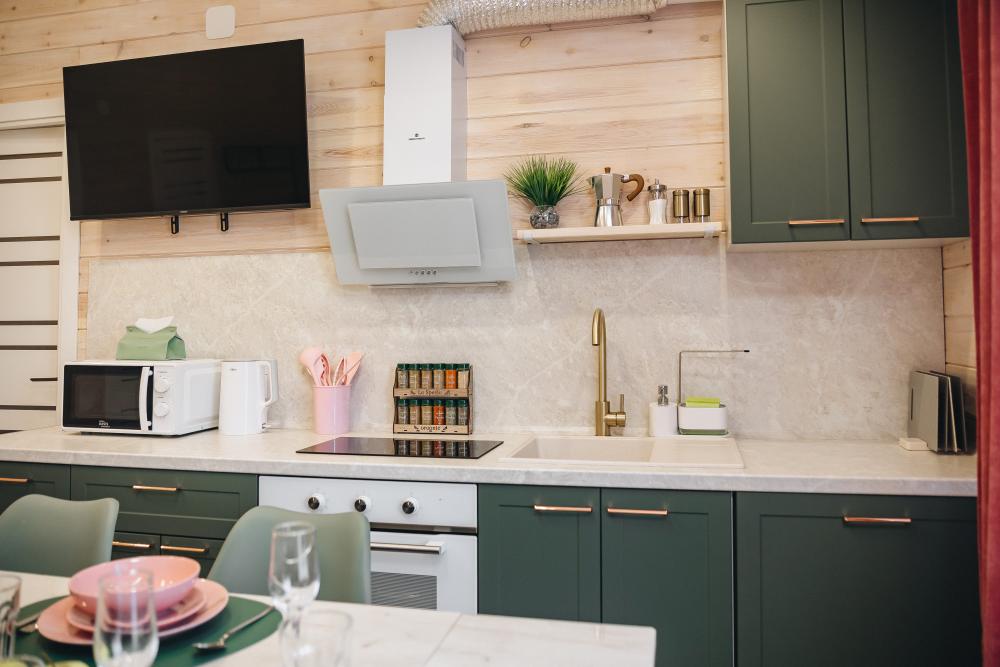 ☑️ Кухня имеет всю необходимую технику: холодильник, плита, духовой шкаф, посудомоечная машина, чайник,микроволновая печь,вытяжка гейзерная кофеварка.