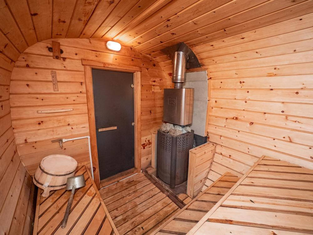 На территории расположены два полностью отдельных коттеджа. У каждого — своя закрытая зона, баня, сибирский чан, беседки с водой, мангальная зона, костровище, большая парковка на 8 автомобилей, где можно разместить прицеп или снегоход, и летний подогреваемый бассейн.