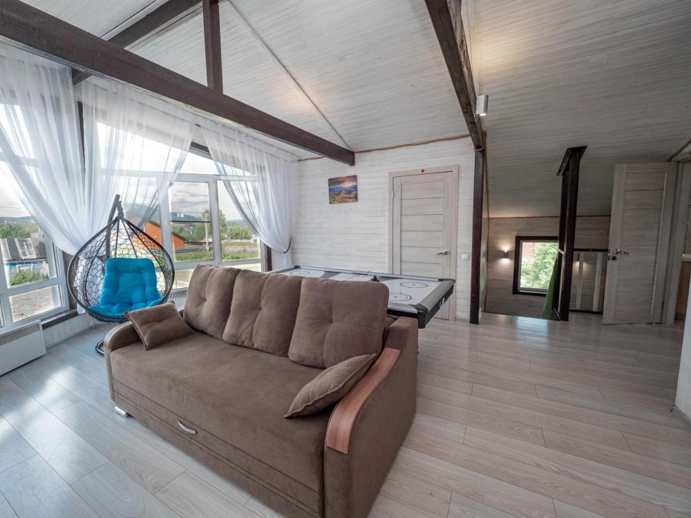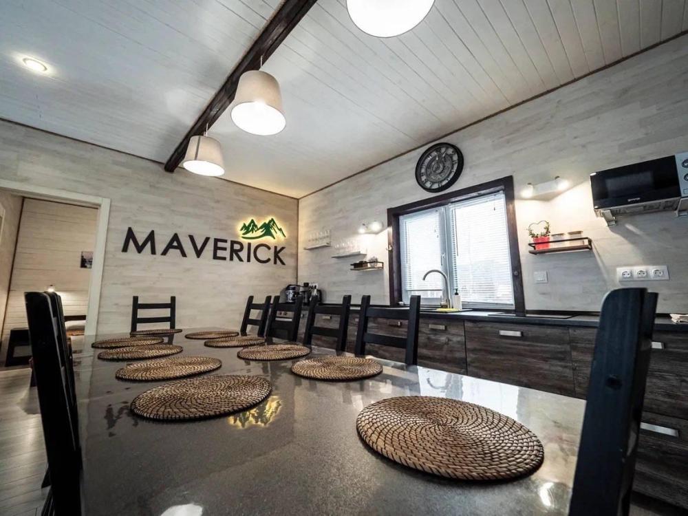 Маверик Дом 2 — комфорт с теплой беседкой и 6 спальнями. Прихожая с тёплым полом и сушилкой для горнолыжной амуниции. Кухня-гостиная: полный набор техники, посуда и бокалы для вина, шампанского, виски и пива. Питьевая вода прямо из-под крана, чай и кофе в подарок. 2 гостиные с раскладными диванами и уютными качелями, Xbox, настольными играми, колонкой, светомузыкой и TV. 6 спален: 2 на первом этаже (двуспальная и 2 односпальные кровати, которые можно сдвинуть), 4 на втором (все двуспальные), детская кроватка. 2 санузла и 2 душа, стиральная машина, полотенца, фен. Wi-Fi, подогрев пола.