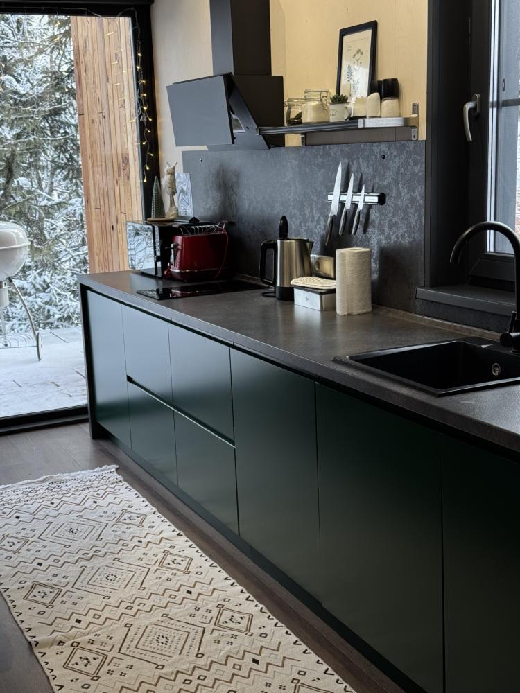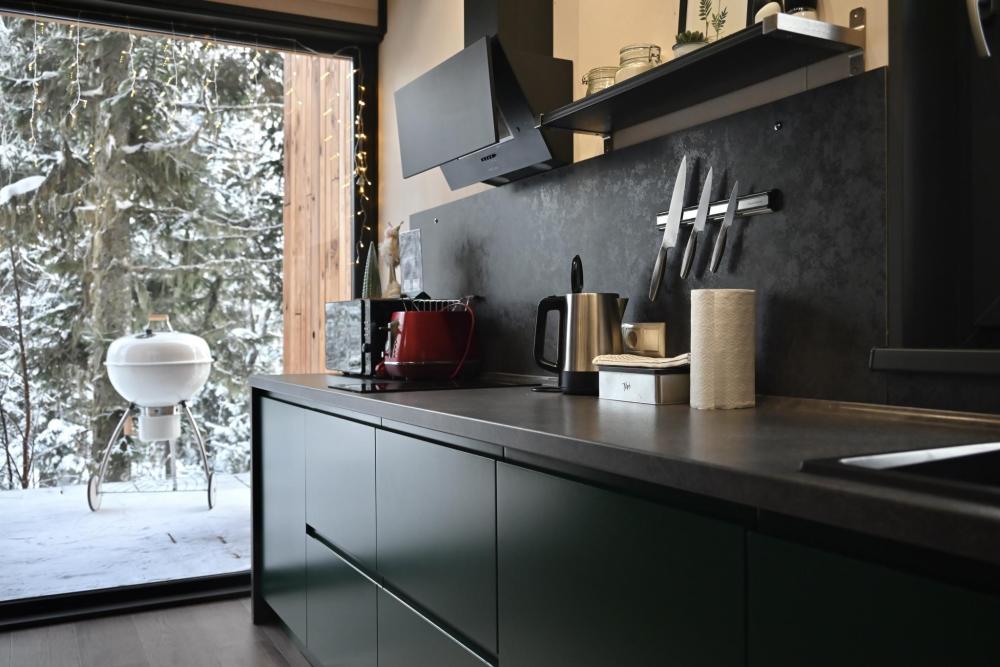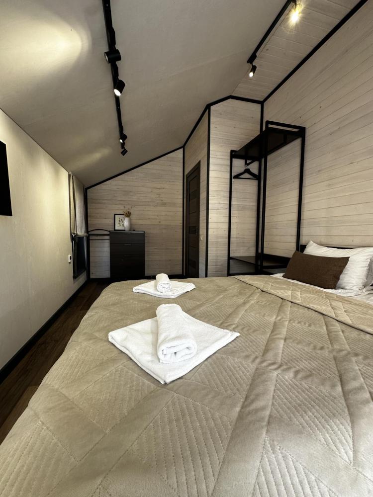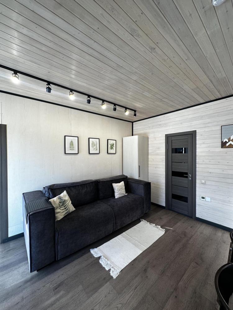 Современный комфортабельный двухэтажный гостевой дом на 6 гостей, построен в стиле барнхаус. Панорамное остекление с видом на лес. Отдельный вход. В доме две раздельные спальни с двухспальными кроватями 160*200. Два санузла с душевыми и стиральной машиной. Косметика для душа и белоснежные полотенца для каждого гостя. На первом этаже расположена гостиная с раскладным диваном и большим телевизором с функцией SmartTV, кухня, оборудованная бытовой техникой и посудой. Сушка для горнолыжных ботинок. Собственная терраса с шезлонгами.