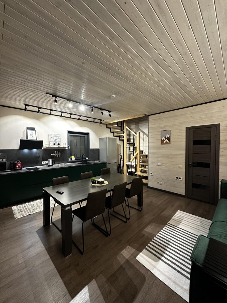 Современный, полностью оборудованный гостевой дом-дуплекс. Один из двух совмещенных домов с отдельным входом и собственной террасой. В двухэтажном барнхаусе: две раздельные спальни с двуспальными кроватями, два санузла с душевыми, стиральная машина. Просторная гостиная с раскладным диваном и SmartTV, полностью оборудованная техникой и посудой кухня-столовая с большим обеденным столом. С собственной террасы открывается панорамный вид на гору Зеленая.
