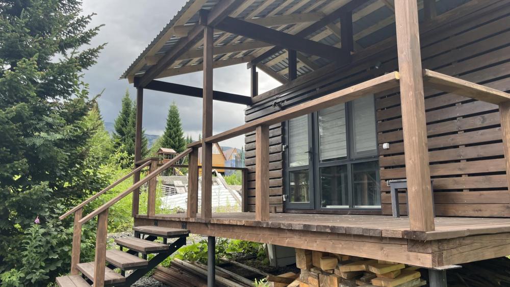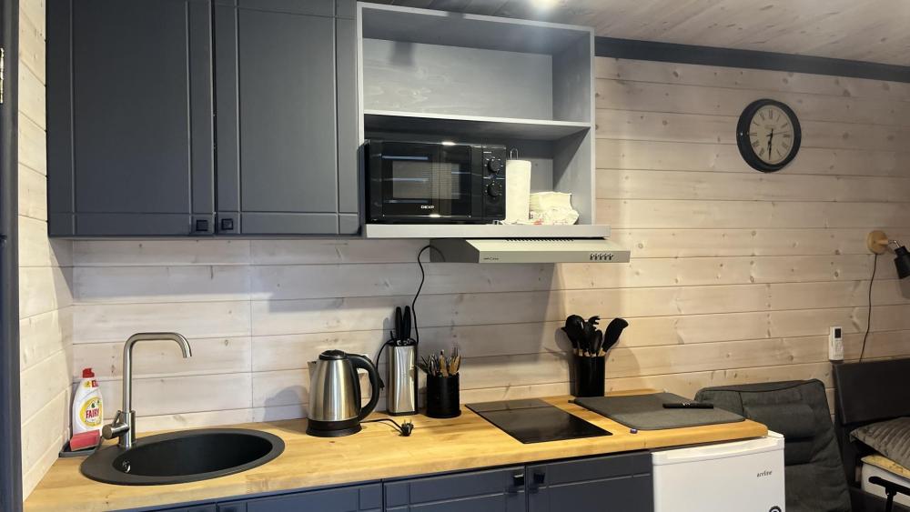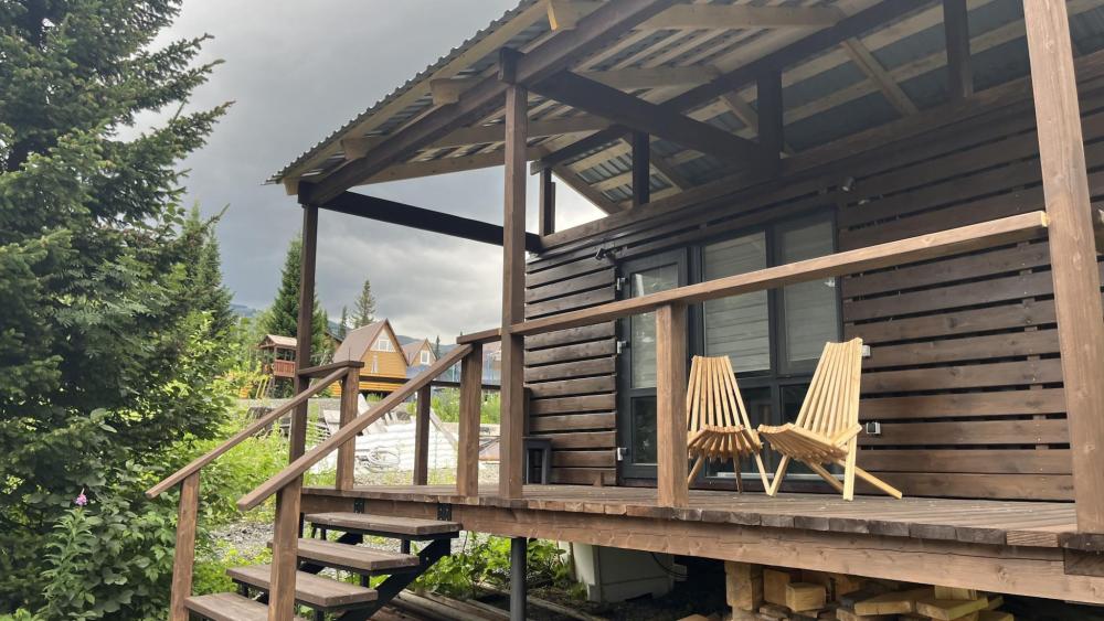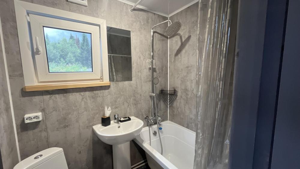 Коттедж общей площадью 12 кв.м. для размещения до 3-х гостей (с учетом дополнительного места). Дом оснащен всем необходимым для комфортного проживания гостей: двуспальная кровать, раскладное кресло, кухонная зона, WiFi, кондиционер, санузел с небольшой ванной, фен. В доме 2 основных места и 1 дополнительное для ребенка до 8 лет (раскладное кресло). На кухне есть все необходимое: посуда, чайник, микроволновая печь, варочная панель, холодильник. Панорамные окна и веранда с видом на горы.