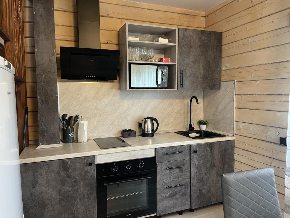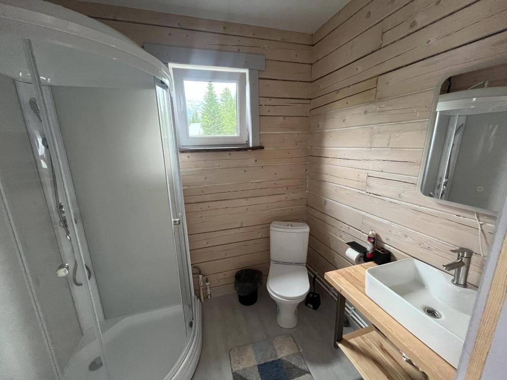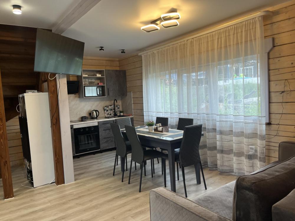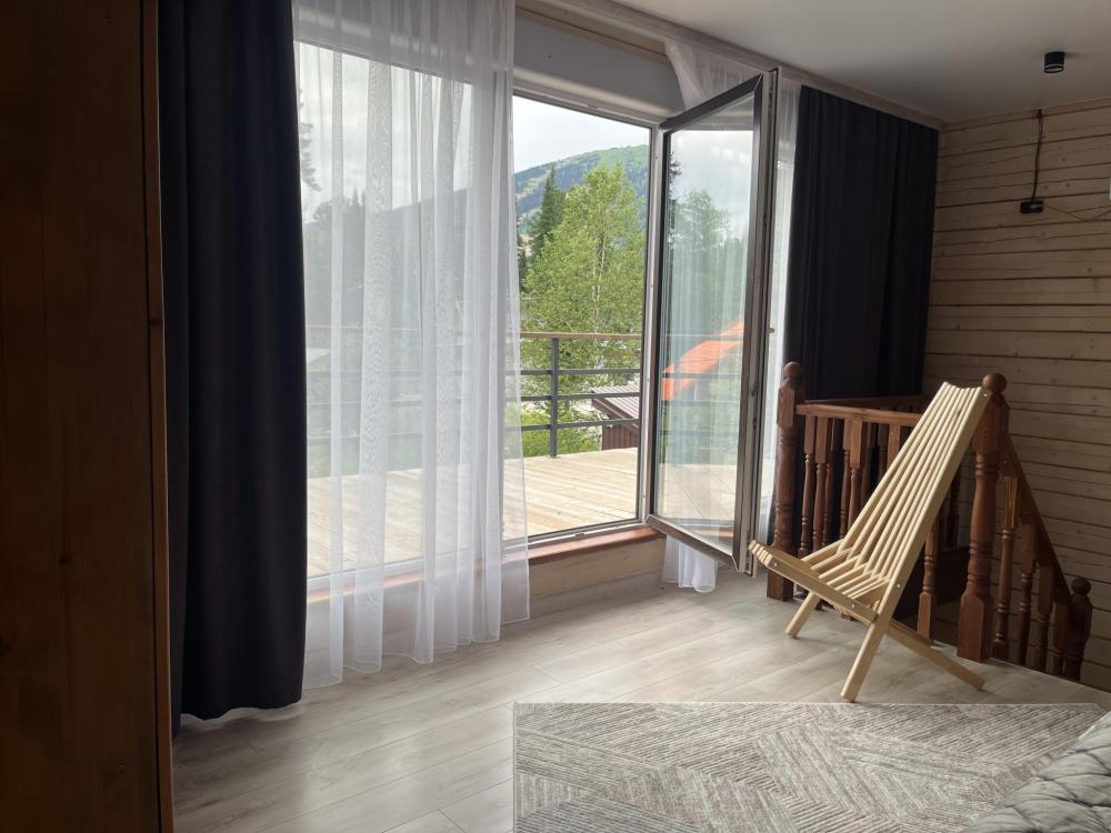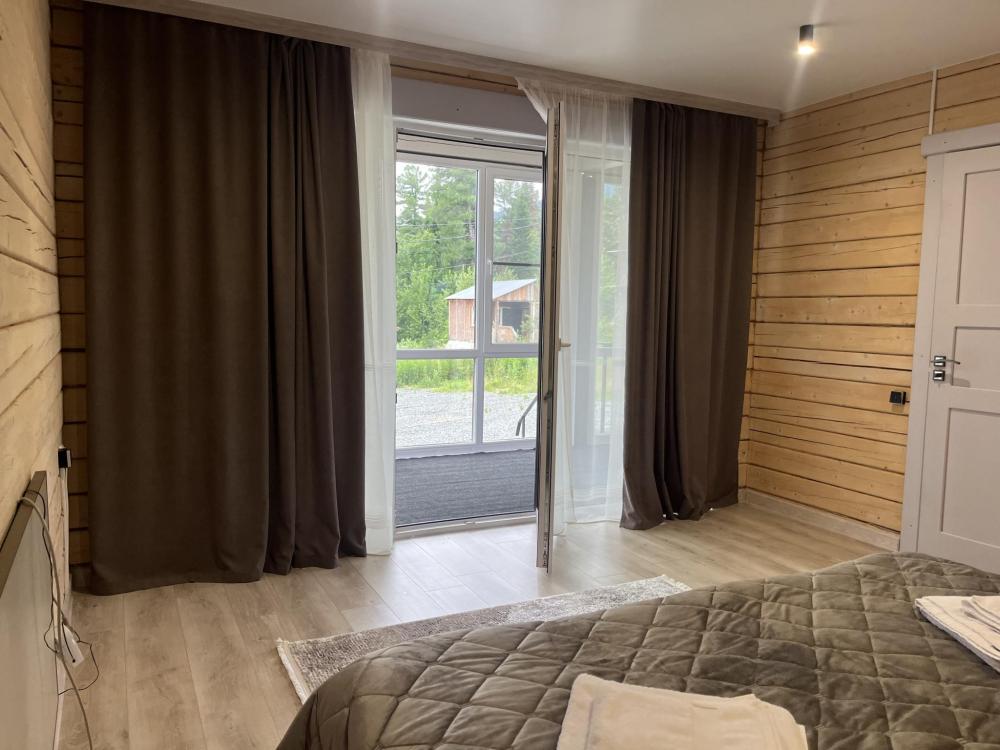 Коттедж общей площадью 70 кв.м. для размещения до 6-ти гостей. Для комфортного проживания гостей дом оснащен всем необходимым: 4 основных места (2 спальни, в каждой двуспальная кровать), а также 2 дополнительных места на диване в гостиной. На первом этаже расположена спальня с панорамными окнами и выходом на веранду. Также рядом расположена гостиная, кухонная зона и санузел с душевой кабиной. На кухне есть все необходимое: посуда, чайник, микроволновая печь, духовой шкаф, варочная панель, холодильник с морозильной камерой. На втором этаже также расположена спальня с панорамными окнами, видом на горы и возможностью провести время на шикарной открытой террасе. В данной спальне также есть свой санузел с душевой кабиной. Гостям предоставляется белоснежное белье и полотенца, имеется кондиционер, фен , стиральная машина, два вместительных шкафа, утюг. На территории для гостей имеется парковка, мангальная зона. Предоставляется доступ к сети Wi-Fi.
