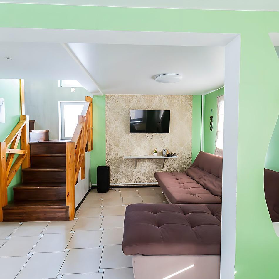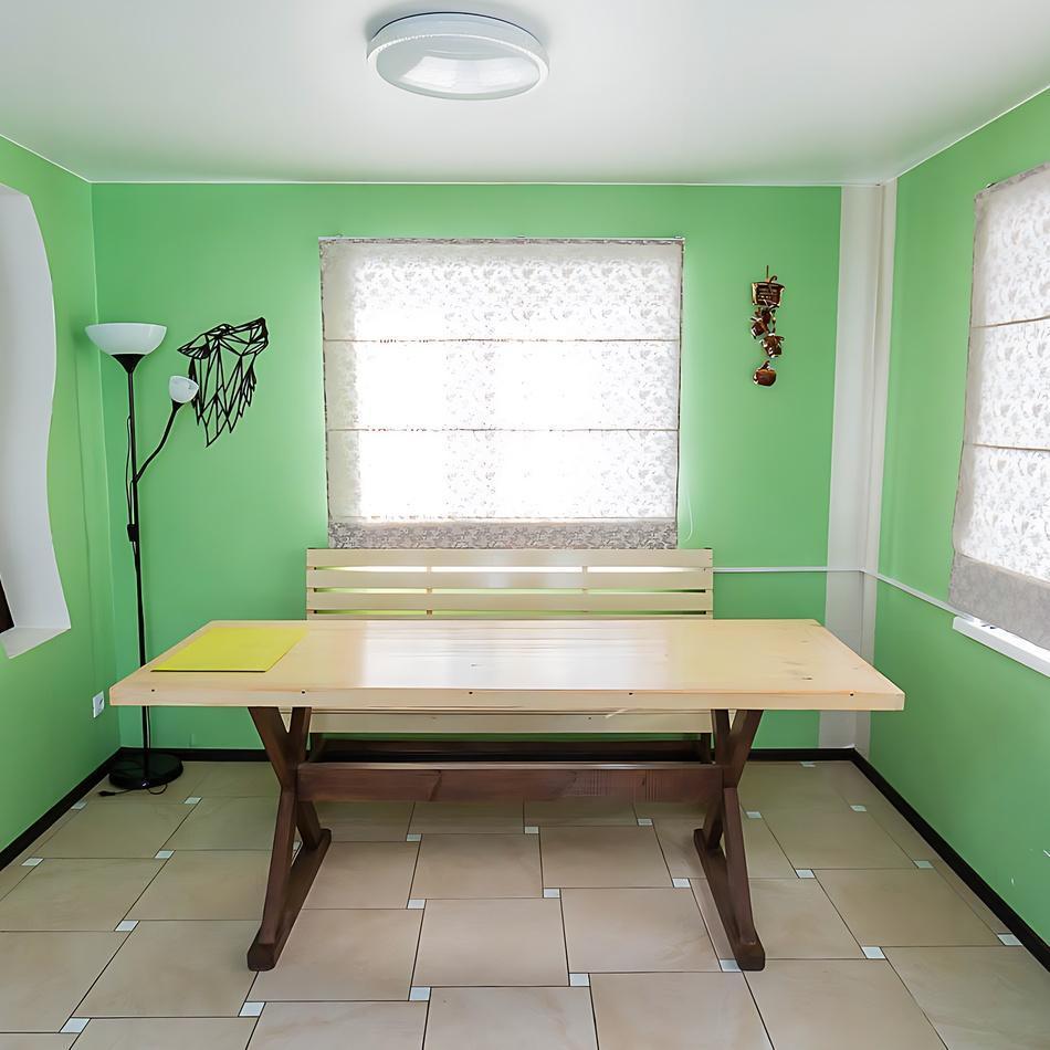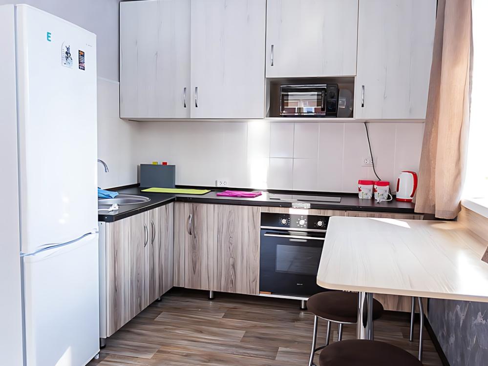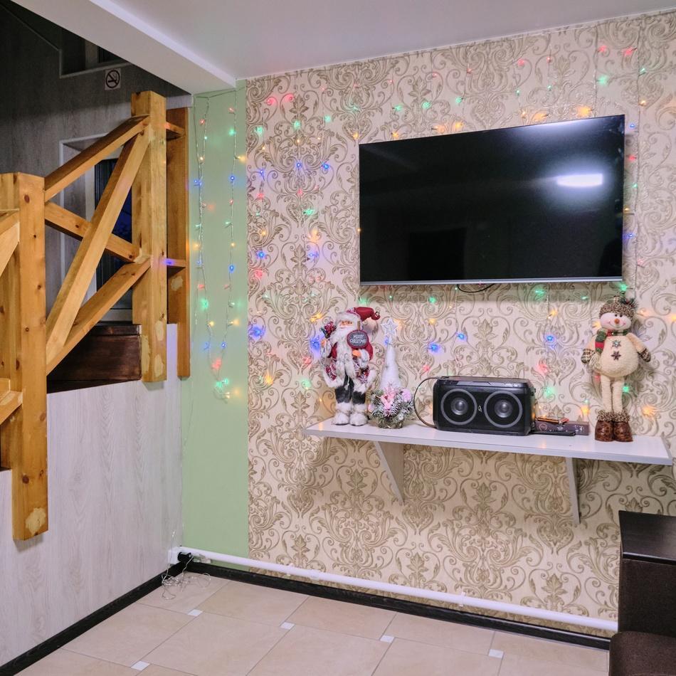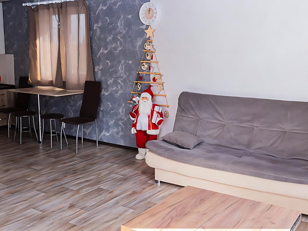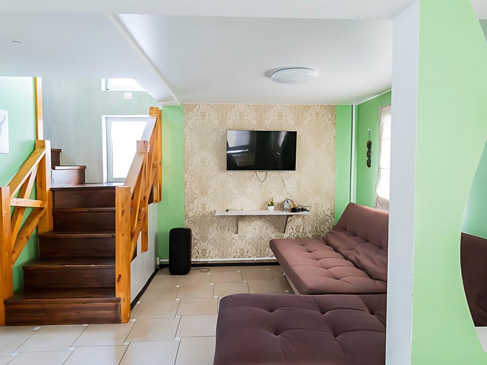 Студия находится на втором этаже двухэтажного дома. Полностью оснащённая кухня: варочная панель, духовой шкаф, микроволновая печь, блендер, холодильник, набор посуды. Зона гостиной с двумя раскладными диванами, просторный санузел с раковиной, унитазом и душевой кабиной. Суммарно предусмотрено 4 спальных места. Депозит: 5000 рублей.