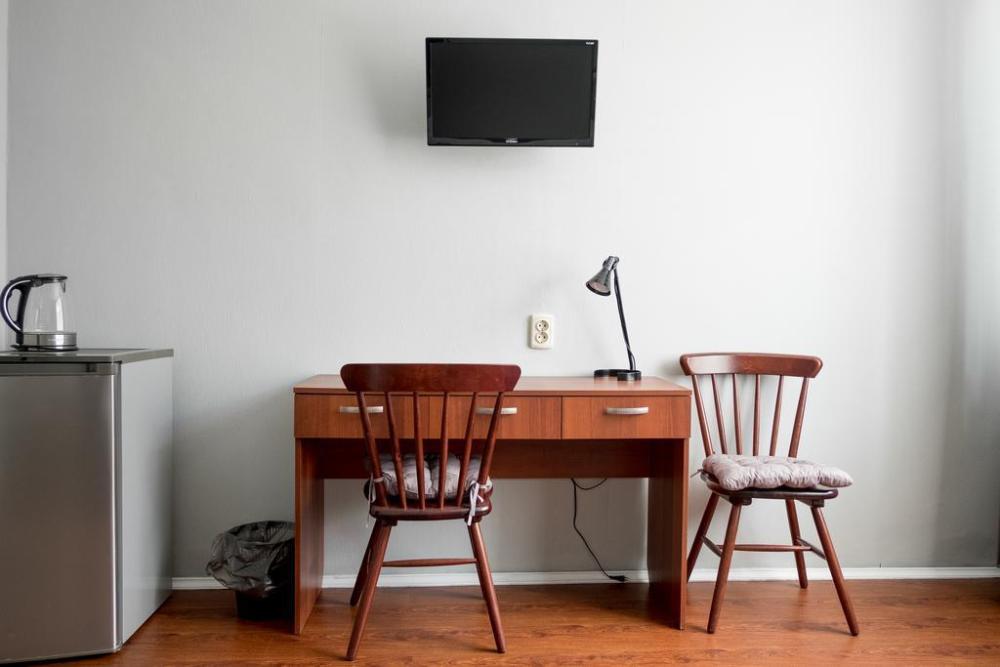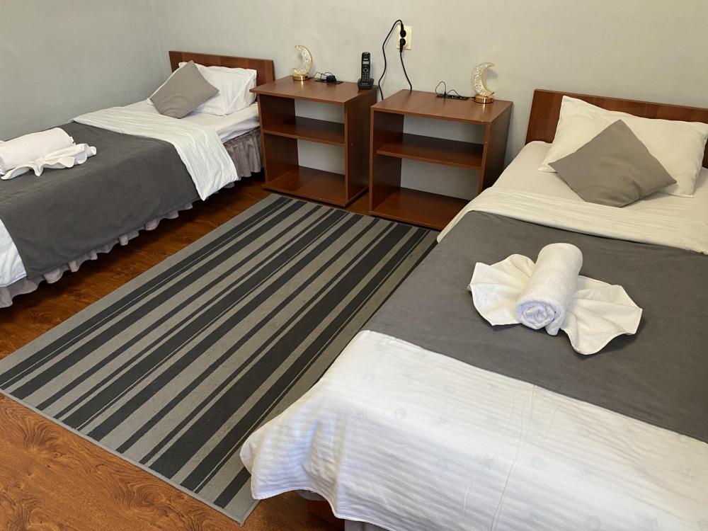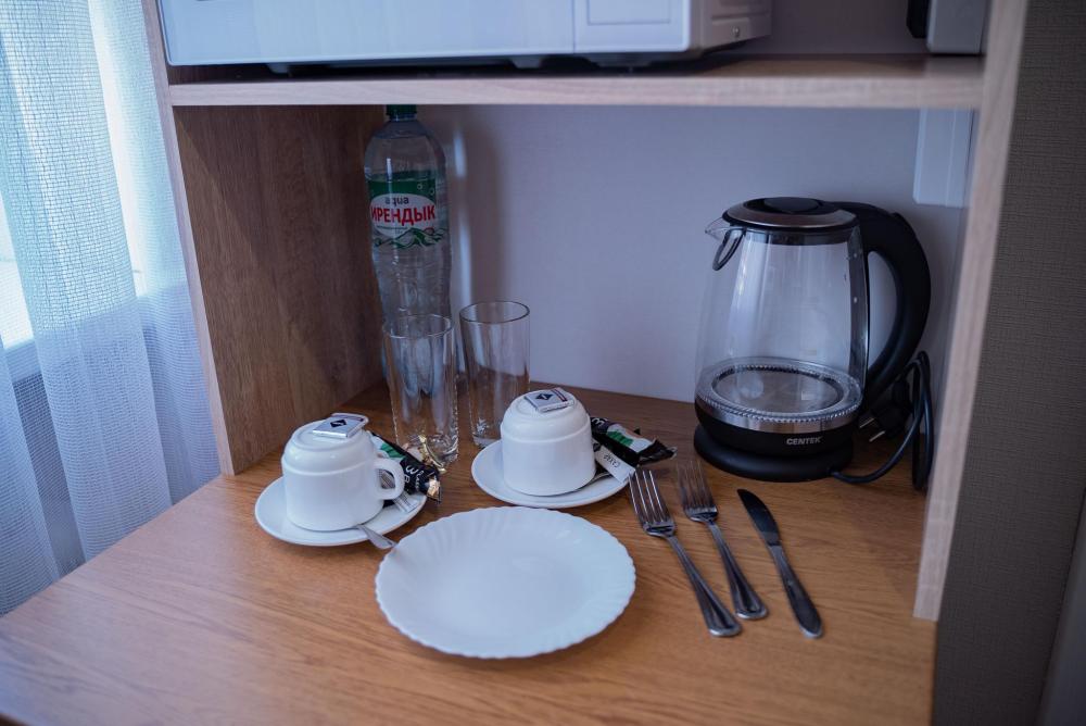 К услугам гостей просторные номера с удобными кроватями и чистым постельным бельем. В числе удобств: смарт ТВ с подключенными платными каналами, холодильник, кондиционер, сейф, фен, душевая кабинка, чайник с чашками и всем необходимым для приготовления чая или кофе.