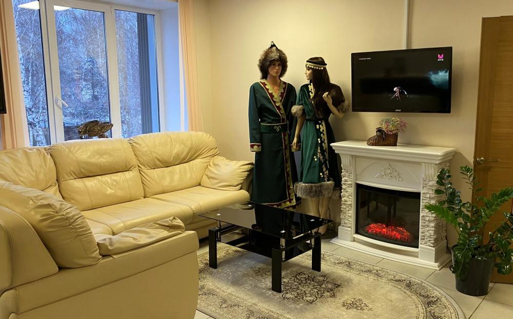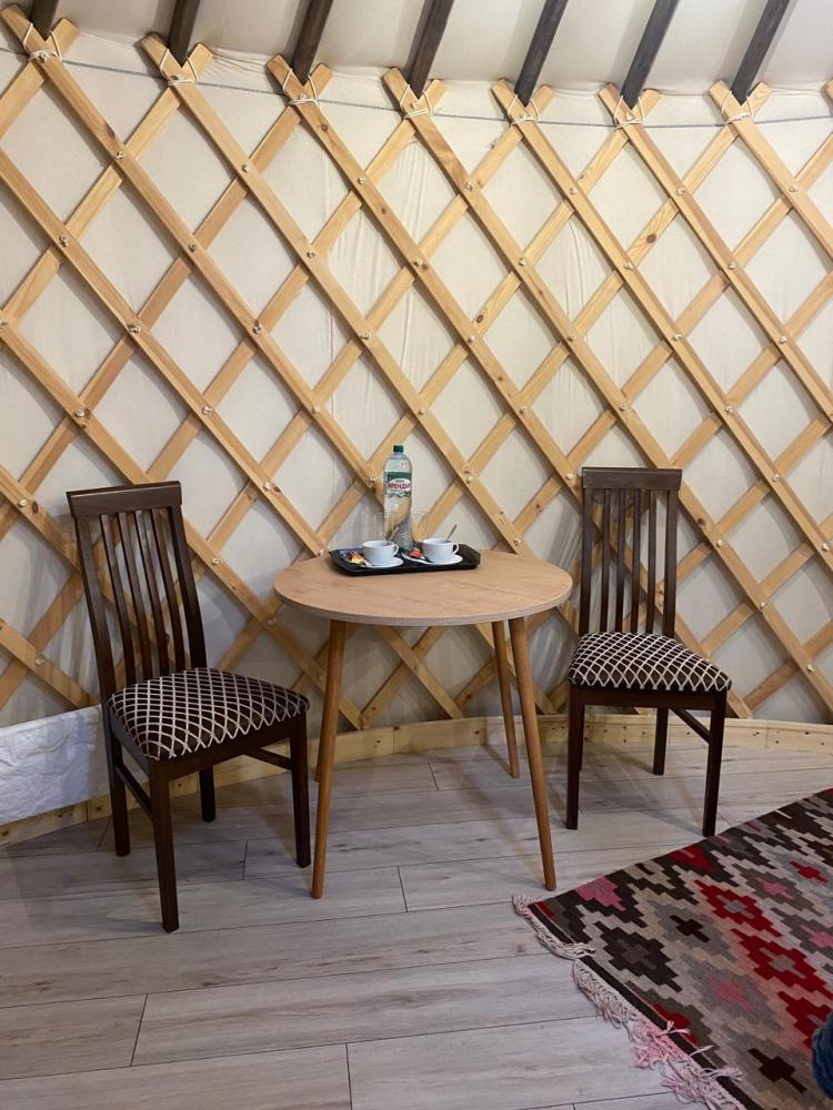 На территории нашей гостиницы установлены три национальные юрты, площадью 28 кв.м. Каждая юрта утеплена и оборудована электрическим отоплением, Юрта оснащена: двухспальной кроватью, раскладным диваном, полноценным сан.узлом (душевая кабинка, раковина, унитаз) с теплым полом, а также мини кухней (холодильник, электроплита, СВ печь, раковина, чайник). На полу красивые коврики. Есть быстрый wi-fi, кондиционер, смарт ТВ с подключенными платными каналами, умная колонка Алиса. Есть замечательное окна на потолке и возможность наблюдать ночное небо.