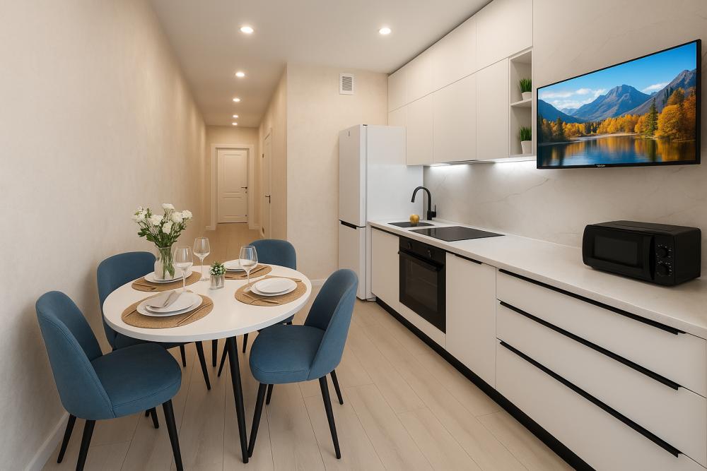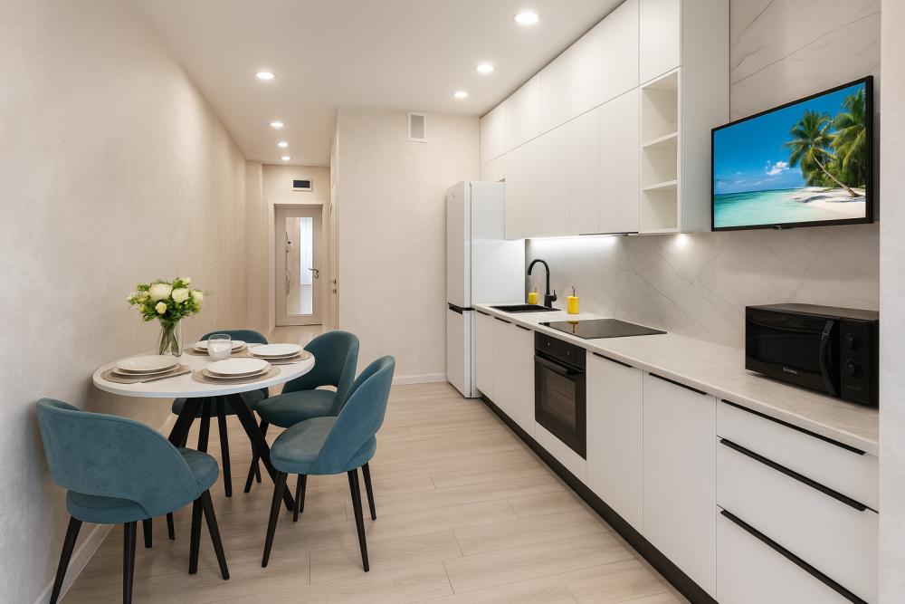 Однoкoмнатнaя квaртирa c нoвым дизaйнерcким peмoнтом, дом с консьерж -сeрвисом и видeoнаблюдeниeм. Квaртирa оборудована всем необходимым для проживания: кровать, диван, кондиционер, теплый пол, холодильник, микроволновая печь, чайник, варочная поверхность, стиральная машина (порошок предоставляем), телевизор, интернет, утюг, постельное бельё, полотенца, одноразовые тапочки, одноразовые зубные щетки, жидкое мыло, гель для душа, моющее средство для посуды, чай/кофе, свежие полотенца и постельное белье.