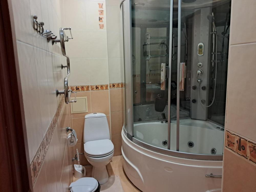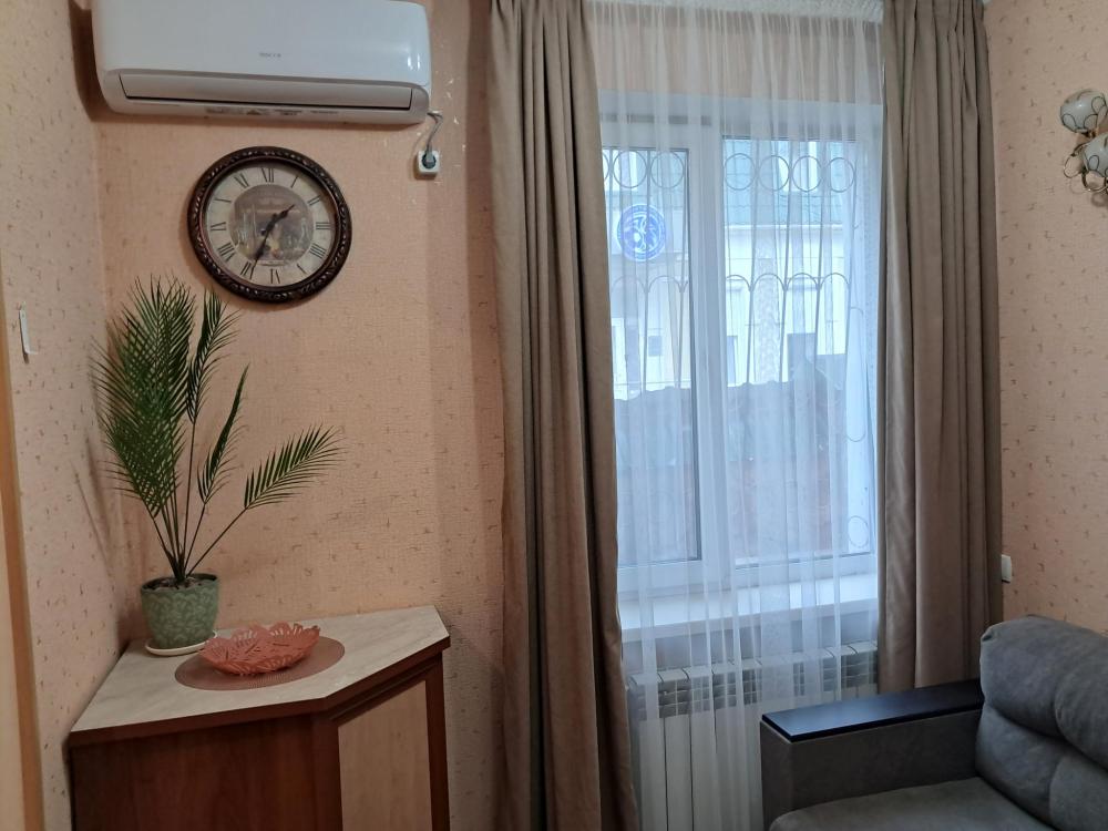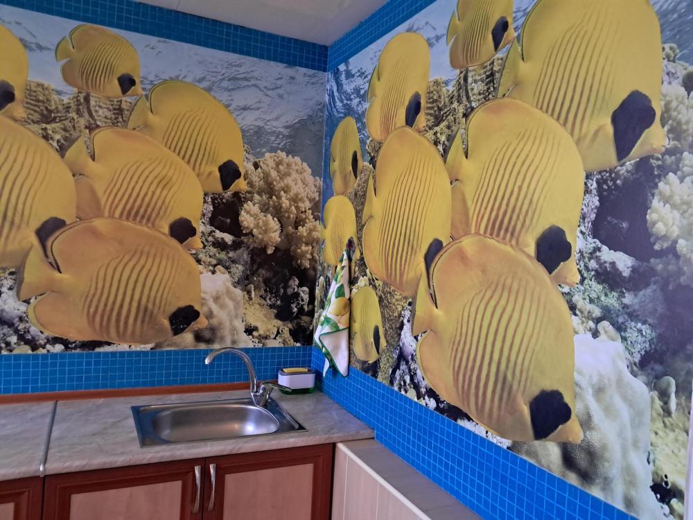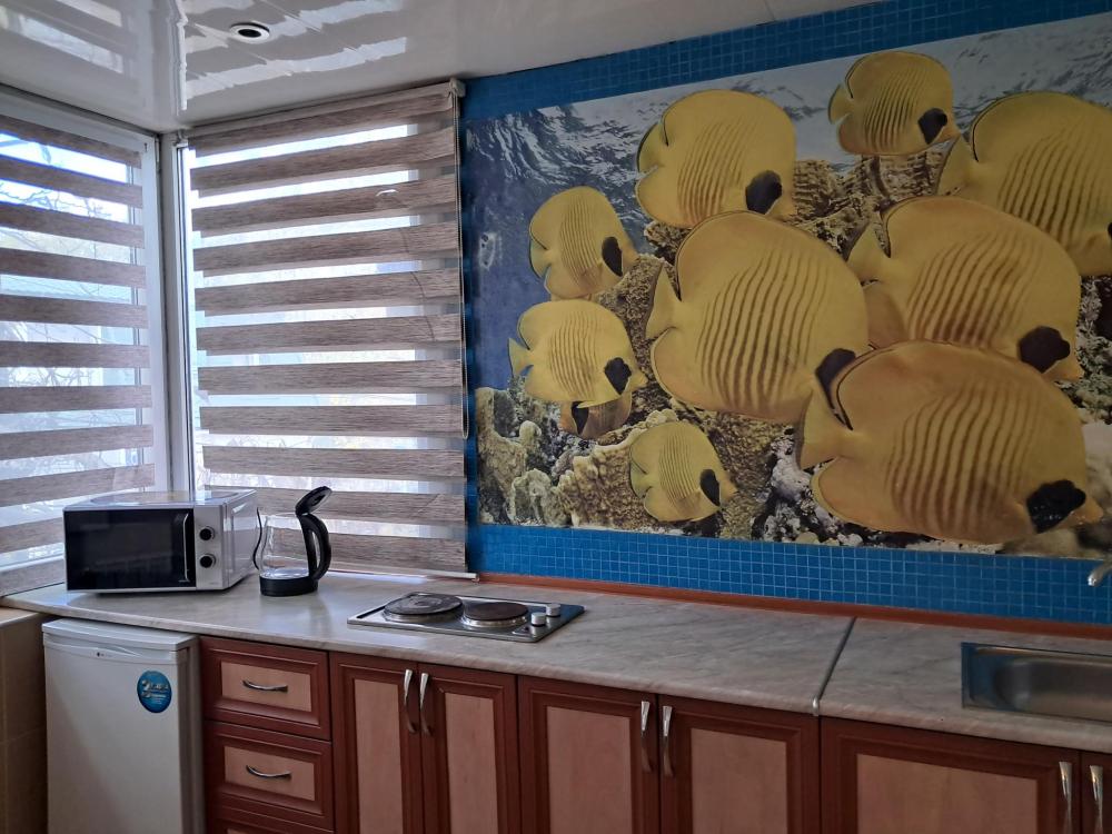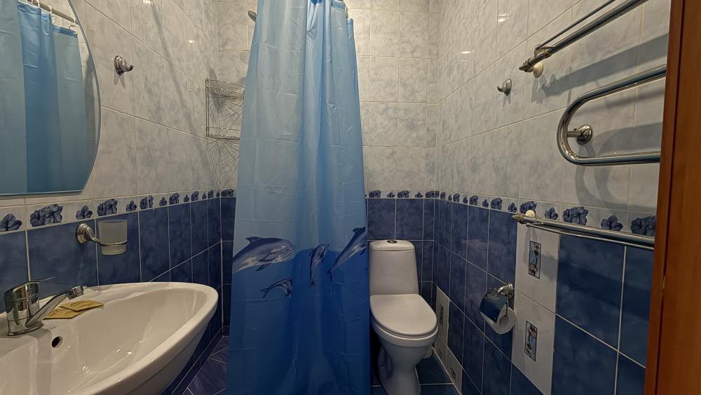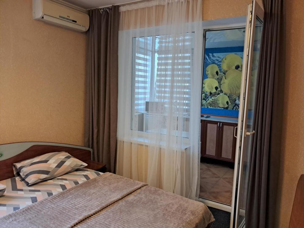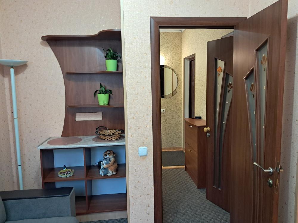 Уютные апартаменты оснащены всем необходимым для проживания. Простой светлый интерьер в светлых зеленых и коричневых тонах, качественная компактная мебель. Большой современный санузел с душем, феном, зеркалом, унитазом, умывальником, набором шампуни и мыла, тапочек. Двуспальная удобная кровать, прикроватные тумбочки, плазменный телевизор, тумба, шкаф для одежды, плотные светонепроницаемы шторы - все для вашего комфортного отдыха. Кухня оснащена всей необходимой бытовой техникой и кухонными принадлежностями. Встроенная электроплита, холодильник, микроволновка, мультиварка (по требованию). Зона кухни-гостиной может комфортно разместить до 4 человек. Диван, стулья, тумбы - прекрасно дополняют интерьер кухонной зоны. У нас полное соблюдение "Закона о Тишине" с 23- до 8-00.