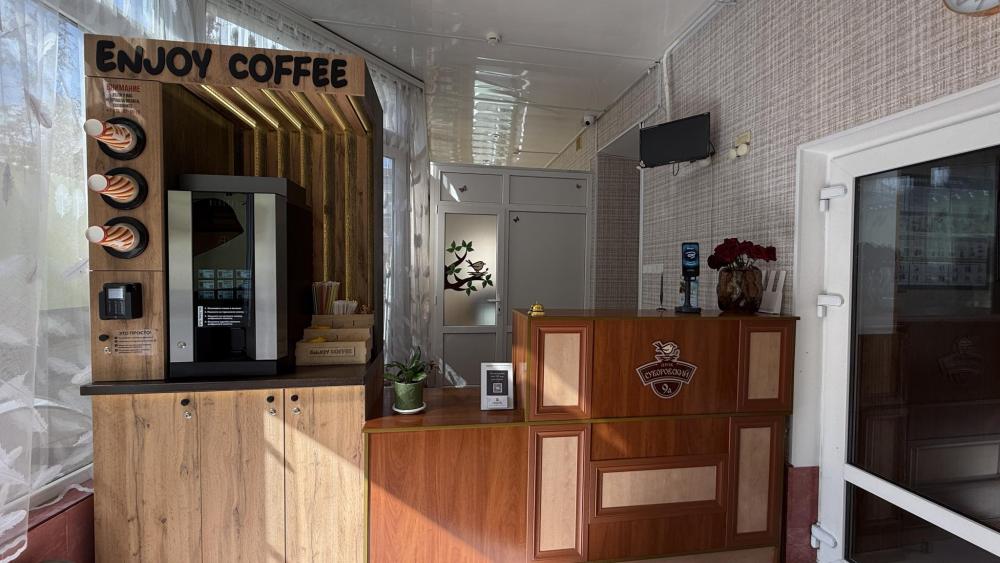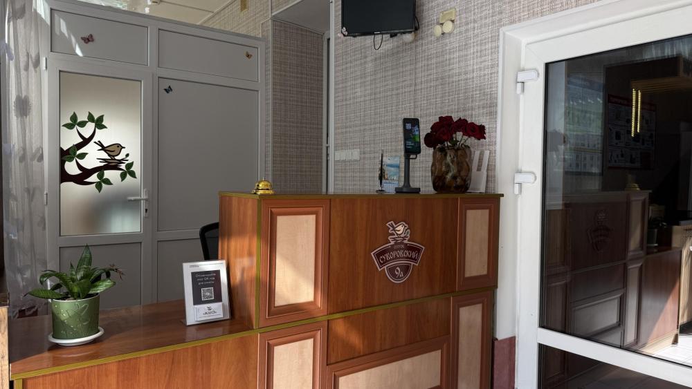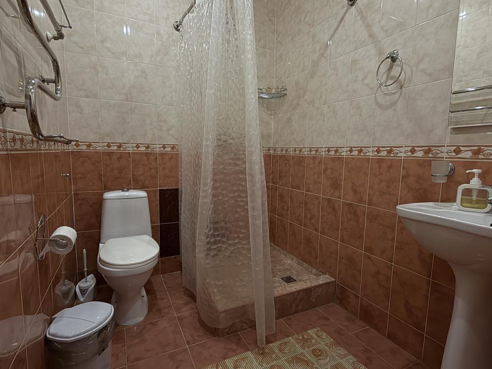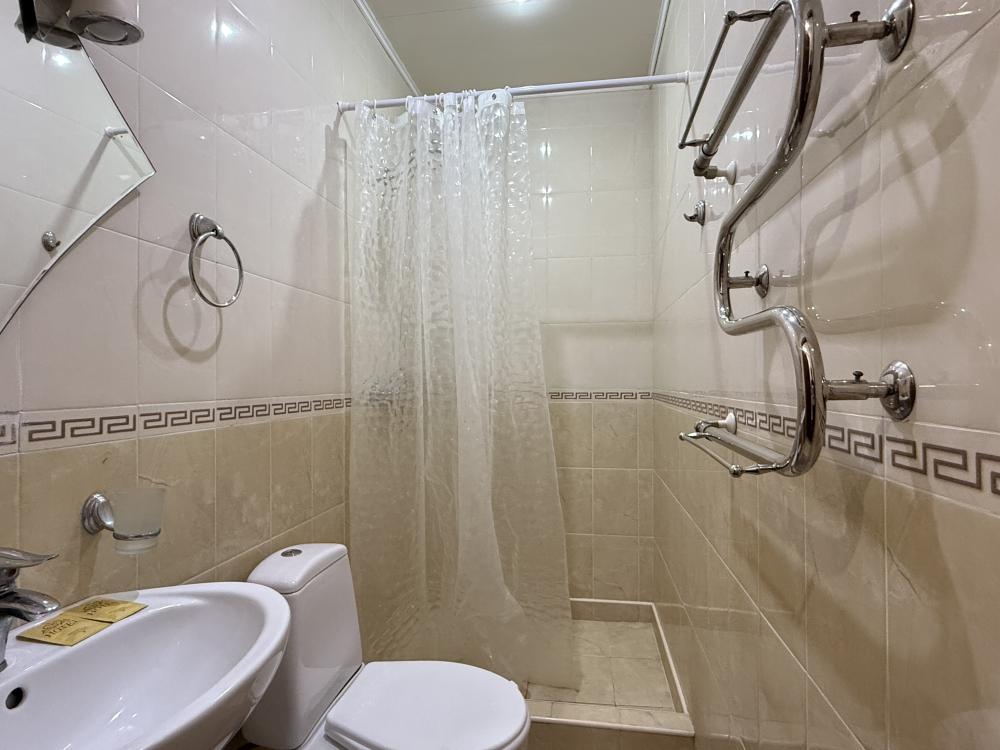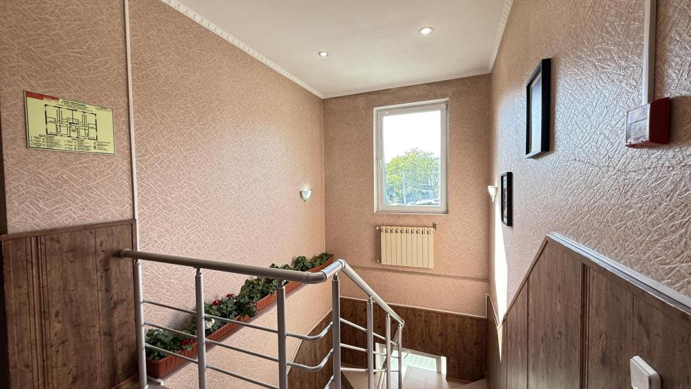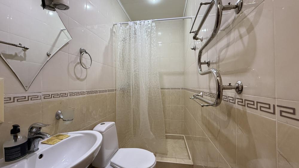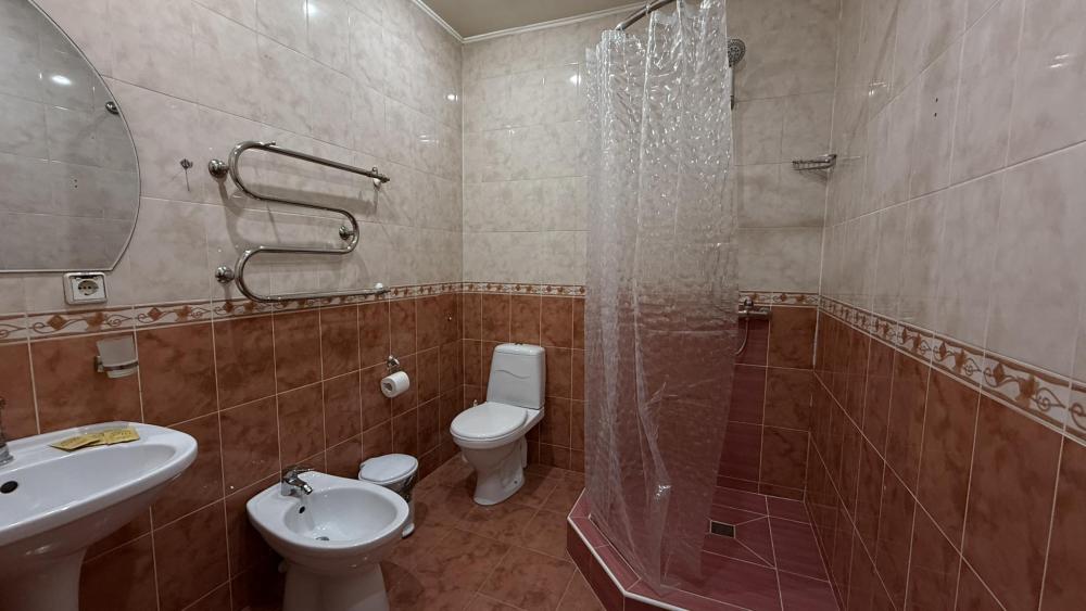 Отличный номер на первом этаже, рядом с ресепшен. Тумба, шкаф, зеркало, стул, холодильник, микроволновка, электрочайник, два стакана и салфетки. Прихожая с вешалками для верхней одежды, шкаф для обуви. Номер оборудован кондиционером. Санузел с душевой кабиной, фен (по требованию). Подача горячей и холодной воды бесперебойная. Особенность этого Номера в том, что ОКНО выходит во внутренний двор, что обеспечит вам полноценный отдых. Кому нравиться тишина, без городской суеты - тогда это самый отличный вариант!