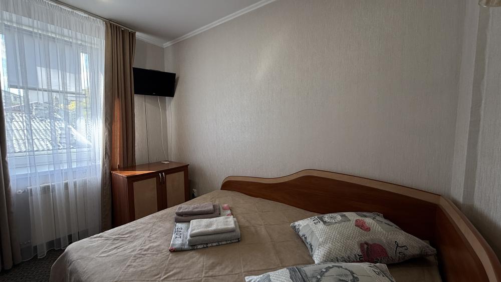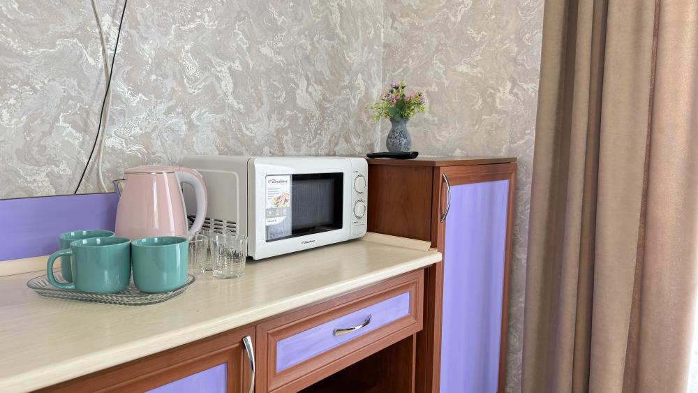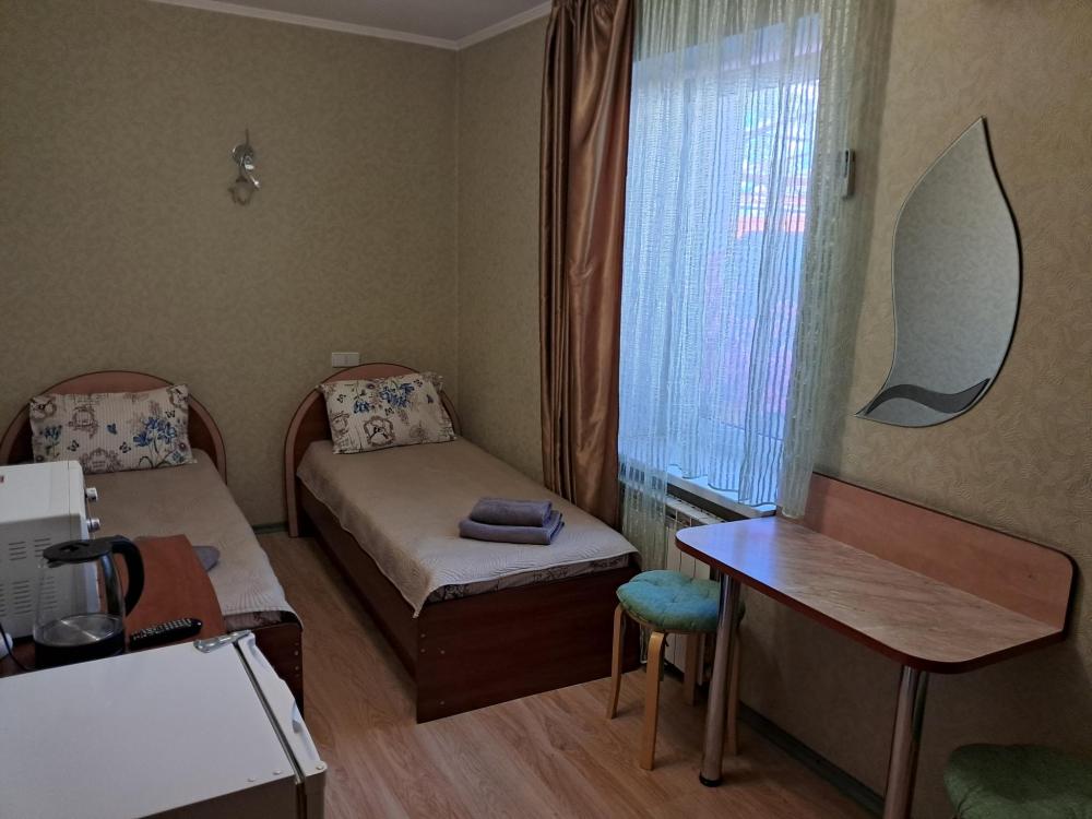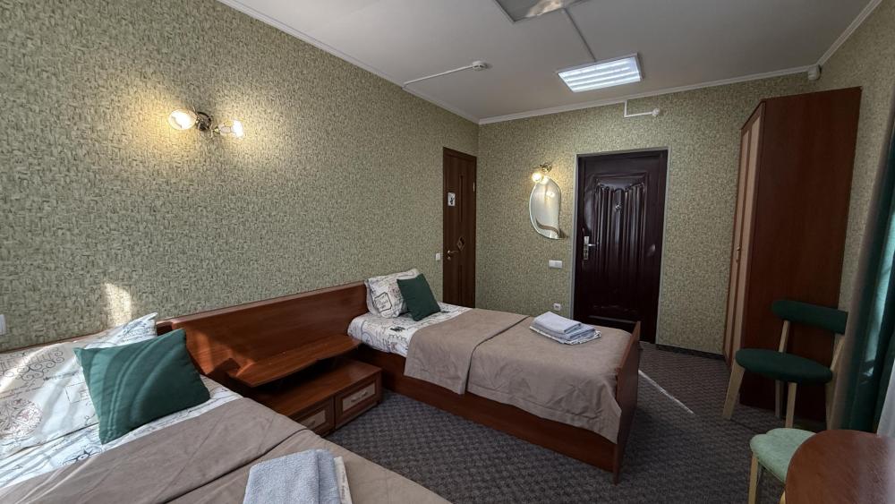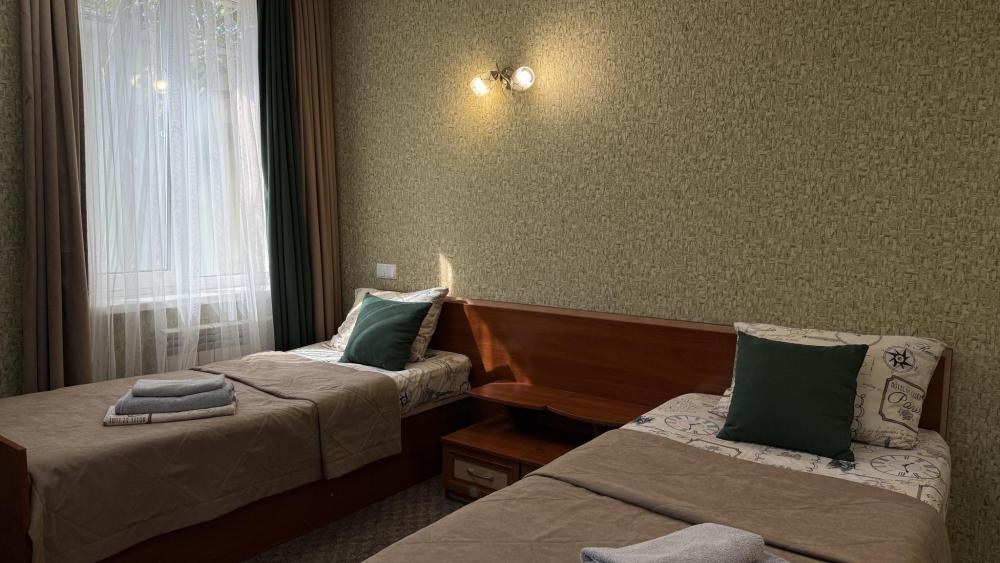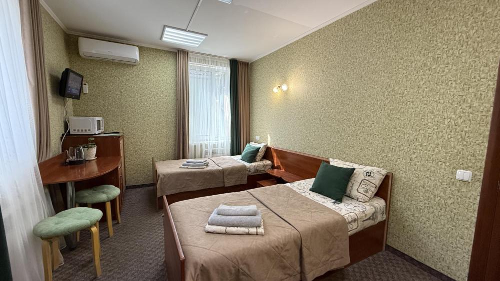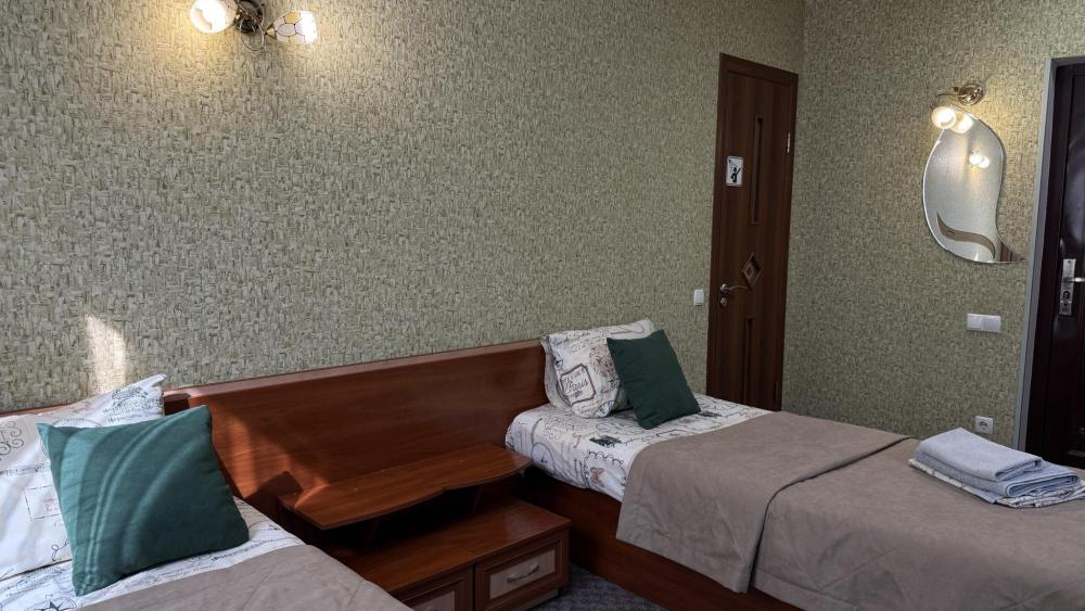 Удобный номер с двумя раздельными кроватями. Оборудован кондиционером для вашего комфортного размещения и проживания. Для удобства отдыха светонепроницаемые шторы " black out" красивого умиротворяющего цвета создадут приятную умиротворяющую атмосферу. Кухонная зона укомплектована электрочайником, микроволновой печью и . В наличии посуда, стаканы, чашки, набор вилок и ножей на две персоны. Удобные кровати с ортопедическим матрасом, прикроватные тумбочки, чистое постельное белье из 100% хлопка, гарантируют возможность хорошего сна и восстановление сил. Современный санузел. Наличие комплекта полотенец на каждого гостя, шампунь, мыло, фен (по требованию). Бесперебойная подача холодной и горячей воды. Бесплатный WI-FI и TV. У нас полное соблюдение "Закона о Тишине" с 23- до 8-00.
