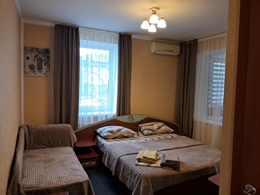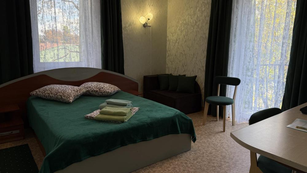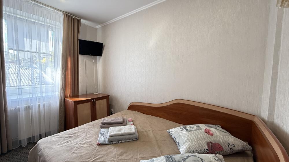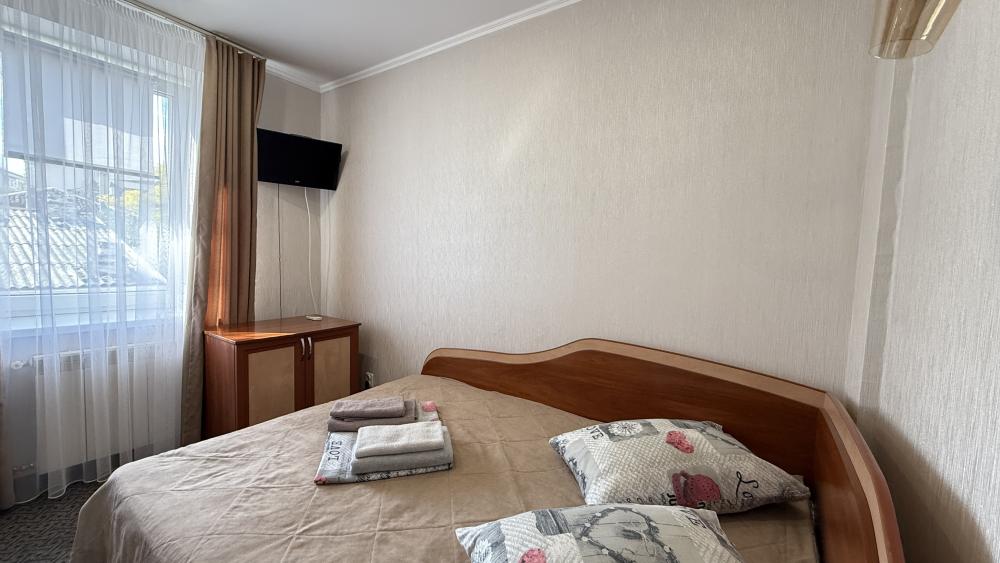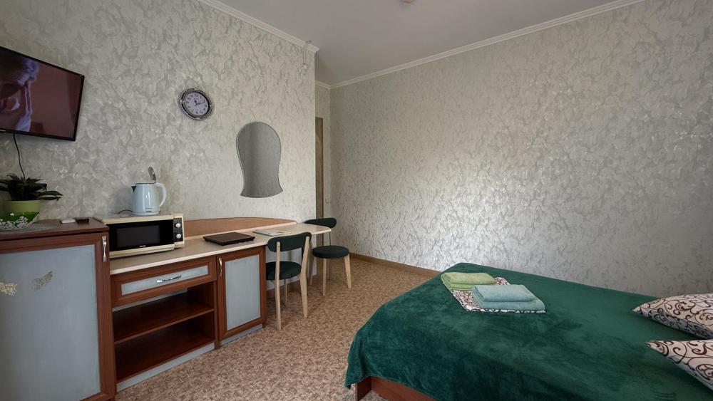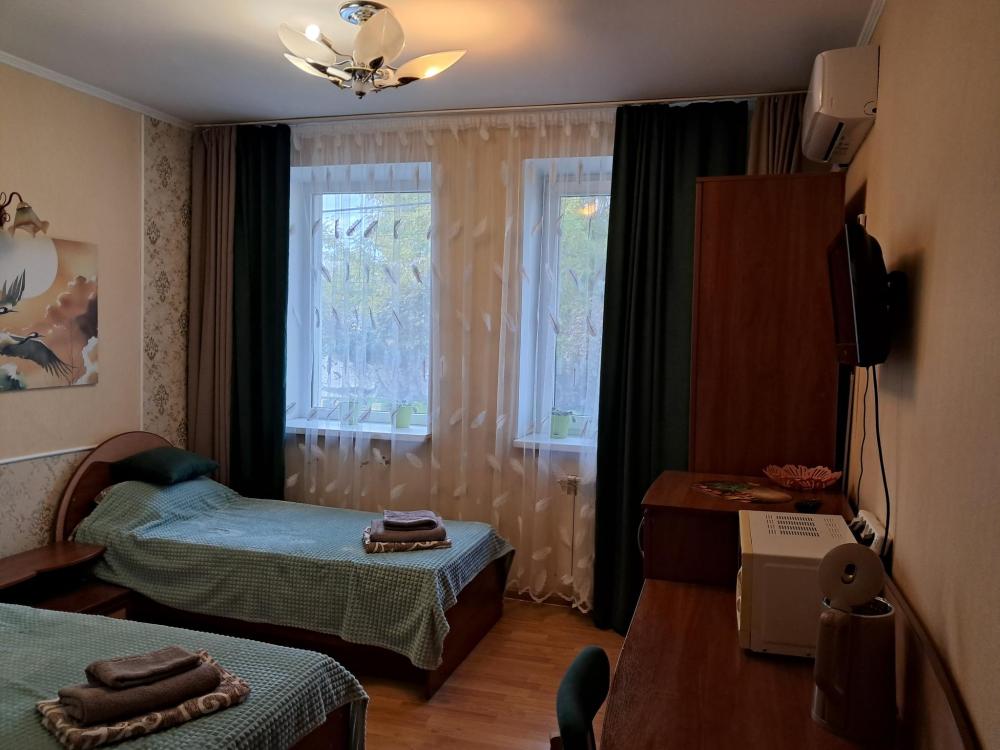 Удобный номер с двумя раздельными кроватями. Оборудован кондиционером для вашего комфортного размещения и проживания. Для удобства отдыха светонепроницаемые шторы " black out" красивого умиротворяющего цвета создадут приятную умиротворяющую атмосферу. Кухонная зона укомплектована электрочайником, микроволновой печью и . В наличии посуда, стаканы, чашки, набор вилок и ножей на две персоны. Удобные кровати с ортопедическим матрасом, прикроватные тумбочки, чистое постельное белье из 100% хлопка, гарантируют возможность хорошего сна и восстановление сил. Современный санузел. Наличие комплекта полотенец на каждого гостя, шампунь, мыло, фен (по требованию). Бесперебойная подача холодной и горячей воды. Бесплатный WI-FI и TV. У нас полное соблюдение "Закона о Тишине" с 23- до 8-00.