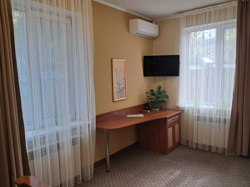 Удобный номер с кондиционером для вашего размещения и проживания с двумя односпальными кроватями. Небольшая зона кухни, микроволновая печь, электрочайник, холодильник . Утюг и гладильную доску предоставляем по запросу. Новые кровати и прикроватные тумбочки из натурального дерева и чистое постельное белье из 100% хлопка, комплект полотенец, светонепроницаемые шторы" black out", гарантируют возможность хорошего сна и восстановление сил. Современный санузел. Бесперебойная подача холодной и горячей воды. Бесплатный WI-FI и TV. У нас полное соблюдение "Закона о Тишине" с 23- до 8-00.